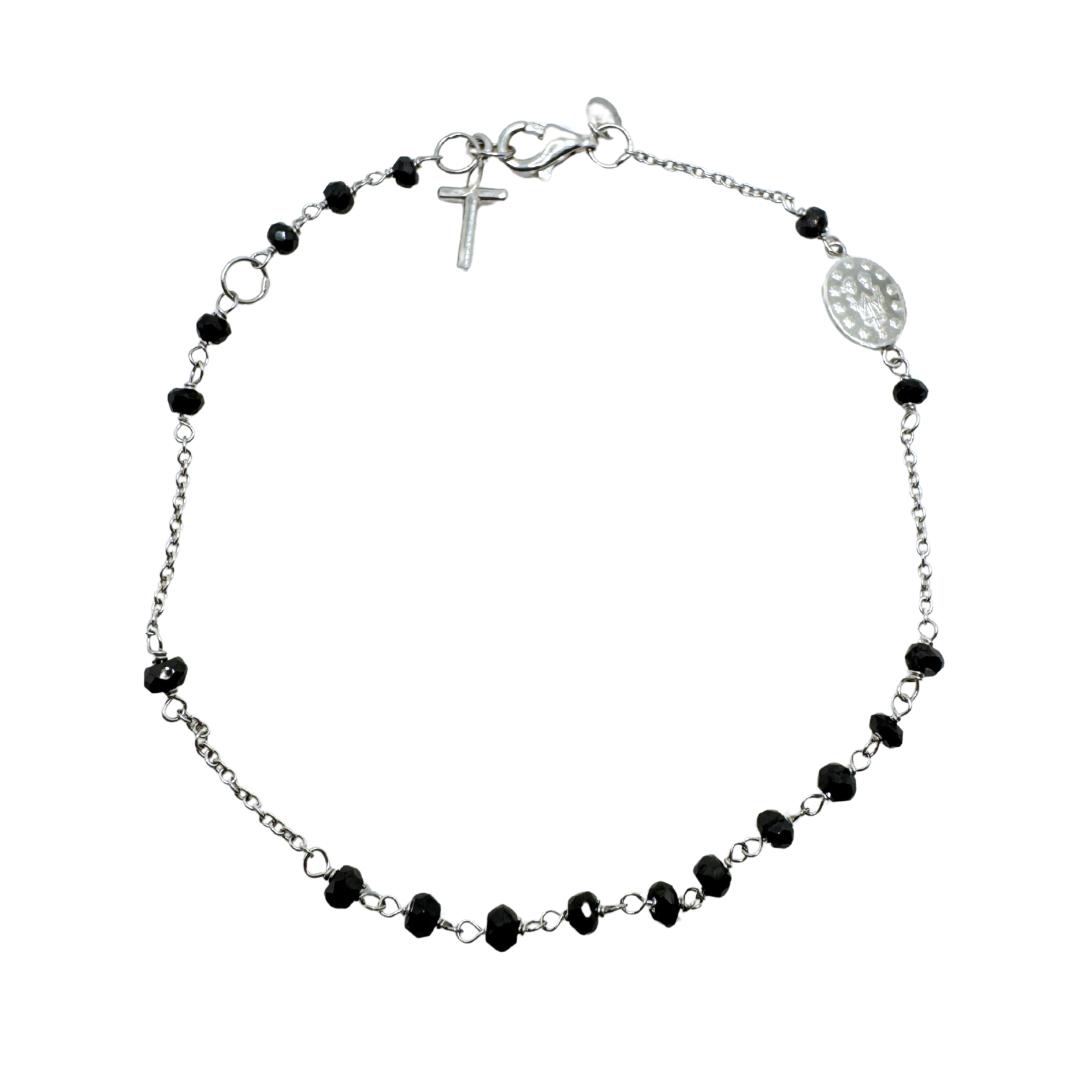 Bracciale Rosario da Uomo in Oro Bianco 18 KT e Spinello Nero