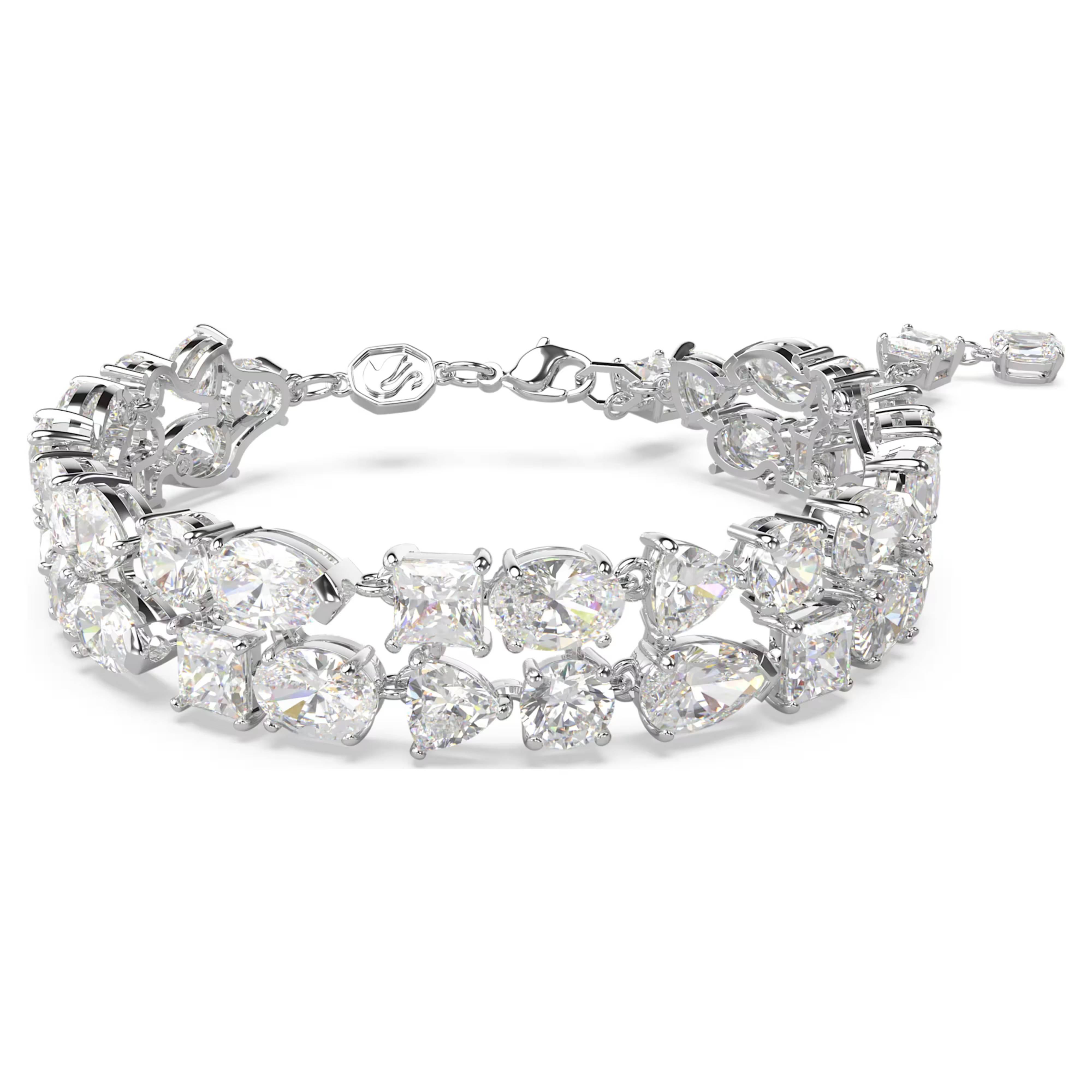 Scegli questo straordinario bracciale a doppia fila che diventerà un must della tua collezione di gioielli. Il suo design placcato rodio presenta un brillante grappolo di Swarovski Zirconia con montatura a griffe in un suggestivo mix di tagli rifiniti con una chiusura a moschettone. L’allungamento pendente presenta una fila di Swarovski Zirconia conferendo a questo gioiello un tocco di lusso in più. Eleganza pura per uno stile da sera o meraviglioso regalo per una persona cara.