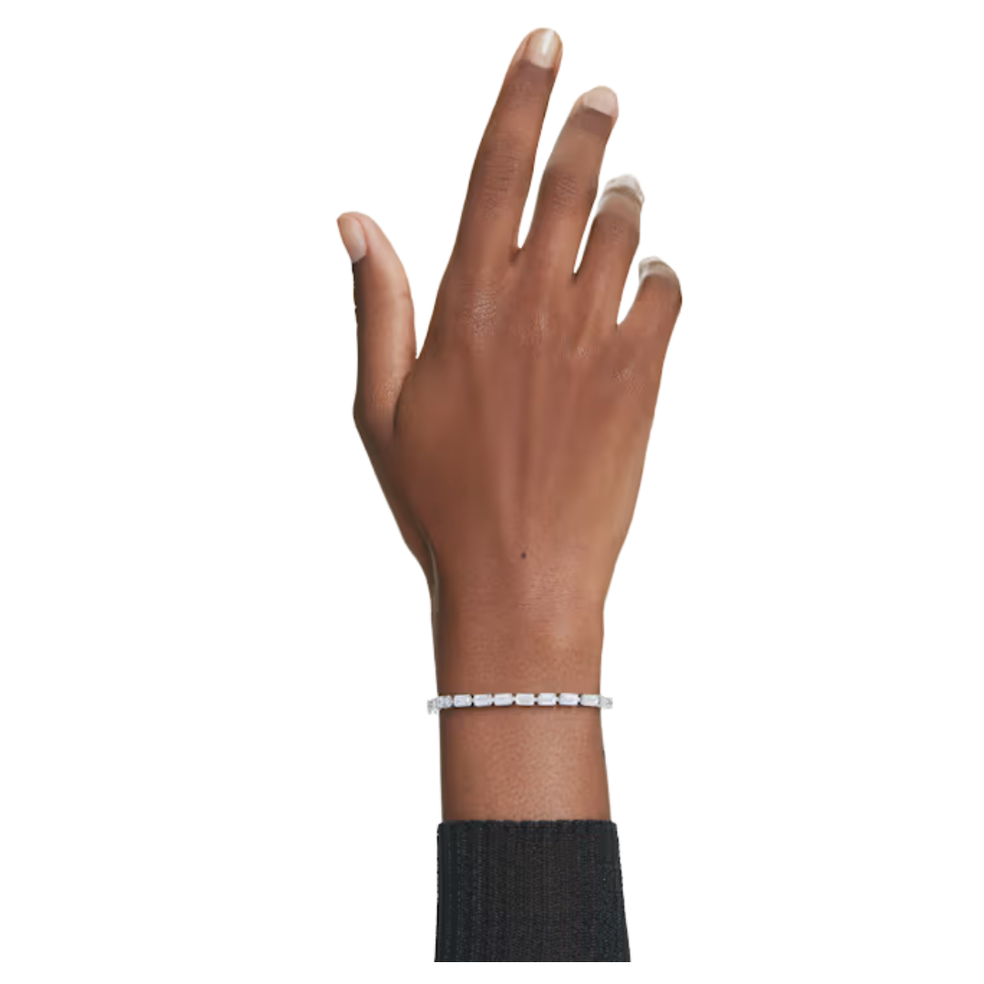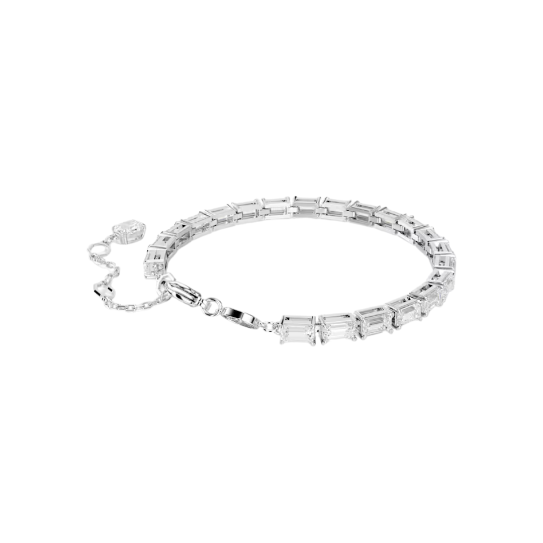 Questo delicato bracciale Matrix reinterpreta un classico intramontabile. Realizzato con un gancio a moschettone, il design placcato rodio presenta un filo completo di Swarovski Zirconia taglio Octagon Step, creando un look luminoso, semplice ma accattivante. Indossalo come una creazione di pura eleganza per ogni occasione, di giorno o di sera.
