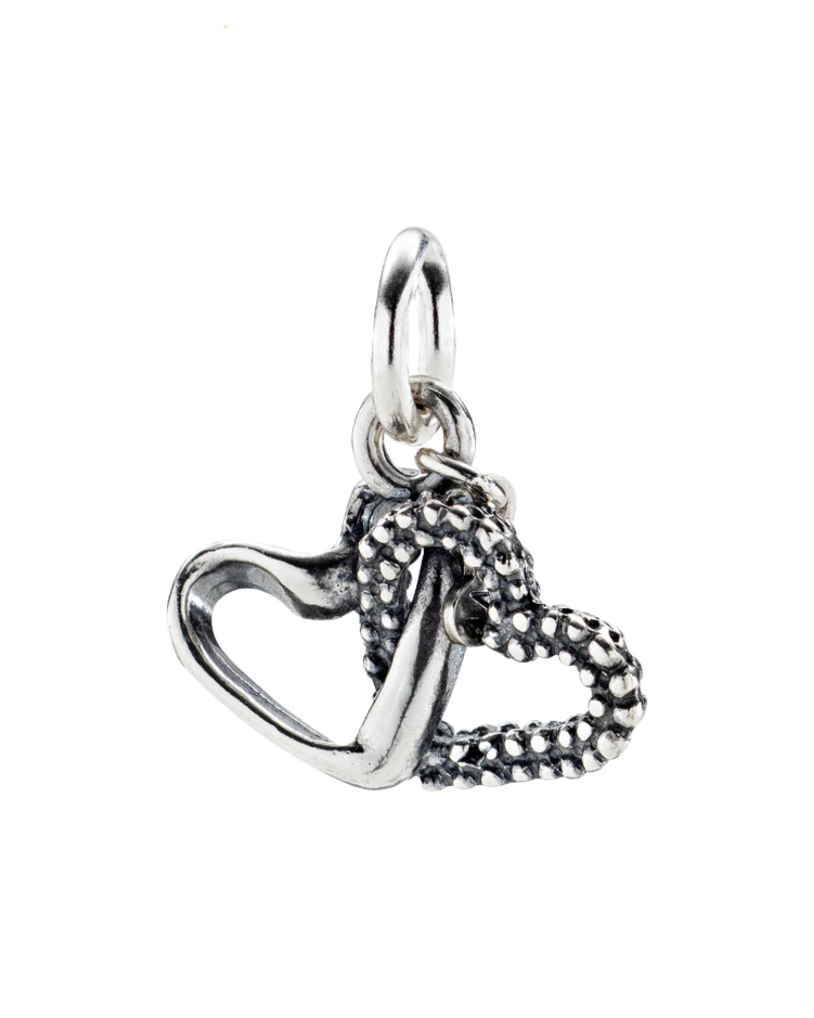 Charm in argento 925 - Cuori intrecciati - Brunito - Dimensioni 20 x 13 mm.