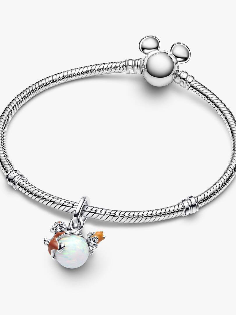 Crea un'atmosfera natalizia divertente con il nuovo charm pendente Cip e Ciop e Pallina di Natale della collezione Disney x Pandora. Realizzati in Argento Sterling 925 con dettagli in smalto, Cip e Ciop sono aggrappati a una pallina di Natale realizzata con un opale bianco creato in laboratorio. Indossali sul tuo bracciale preferito per donare un tocco di allegria al tuo look.