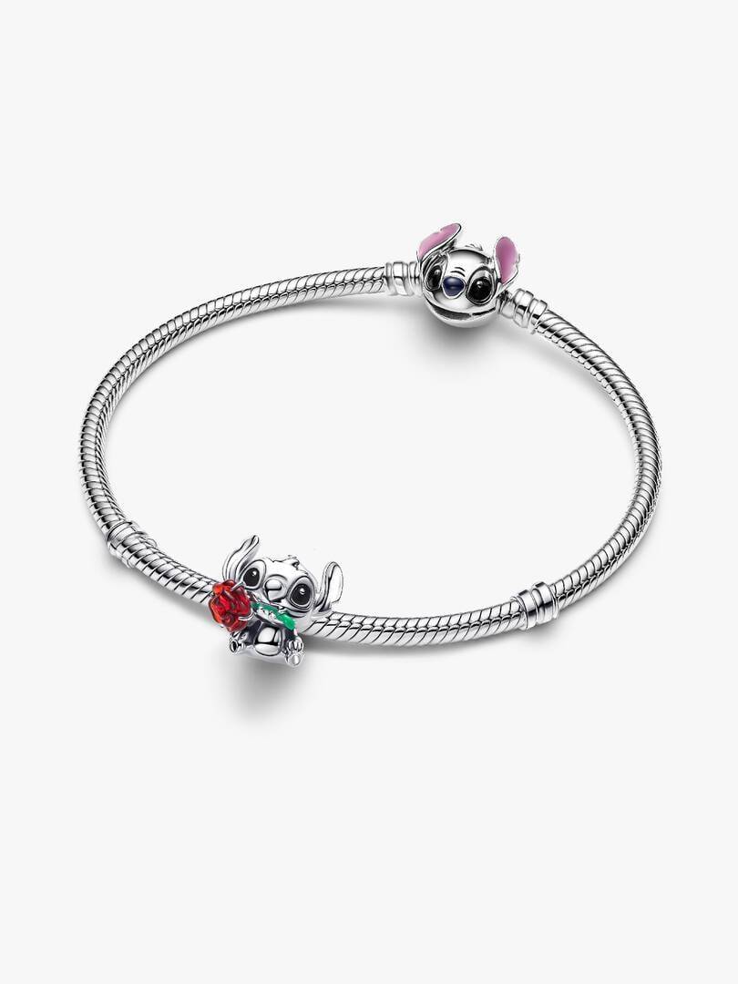 Se il caos è il tuo linguaggio d’amore, il nuovo charm di Stitch fa per te. Questo charm in Argento Sterling 925 rappresenta Stitch con una rosa rossa in vetro di Murano, ed esprime alla perfezione il suo spirito tenero e al tempo stesso birichino.