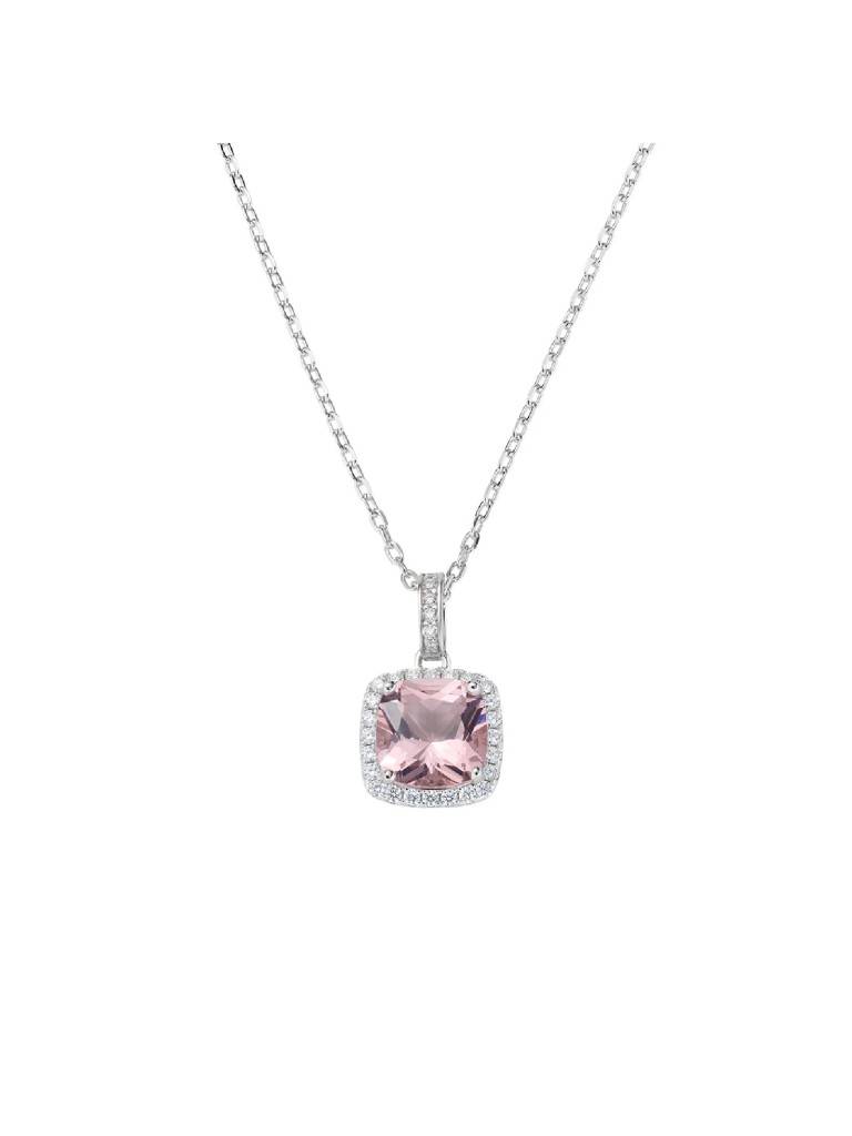Collana girocollo della collezione Amen Lady da donna realizzata in argento 925‰ rodiato con ciondolo squadrato con zircone morganite taglio quadrato incorniciata da zirconi bianchi. Lunghezza regolabile da 40 cm a 45 cm con chiusura a moschettone.