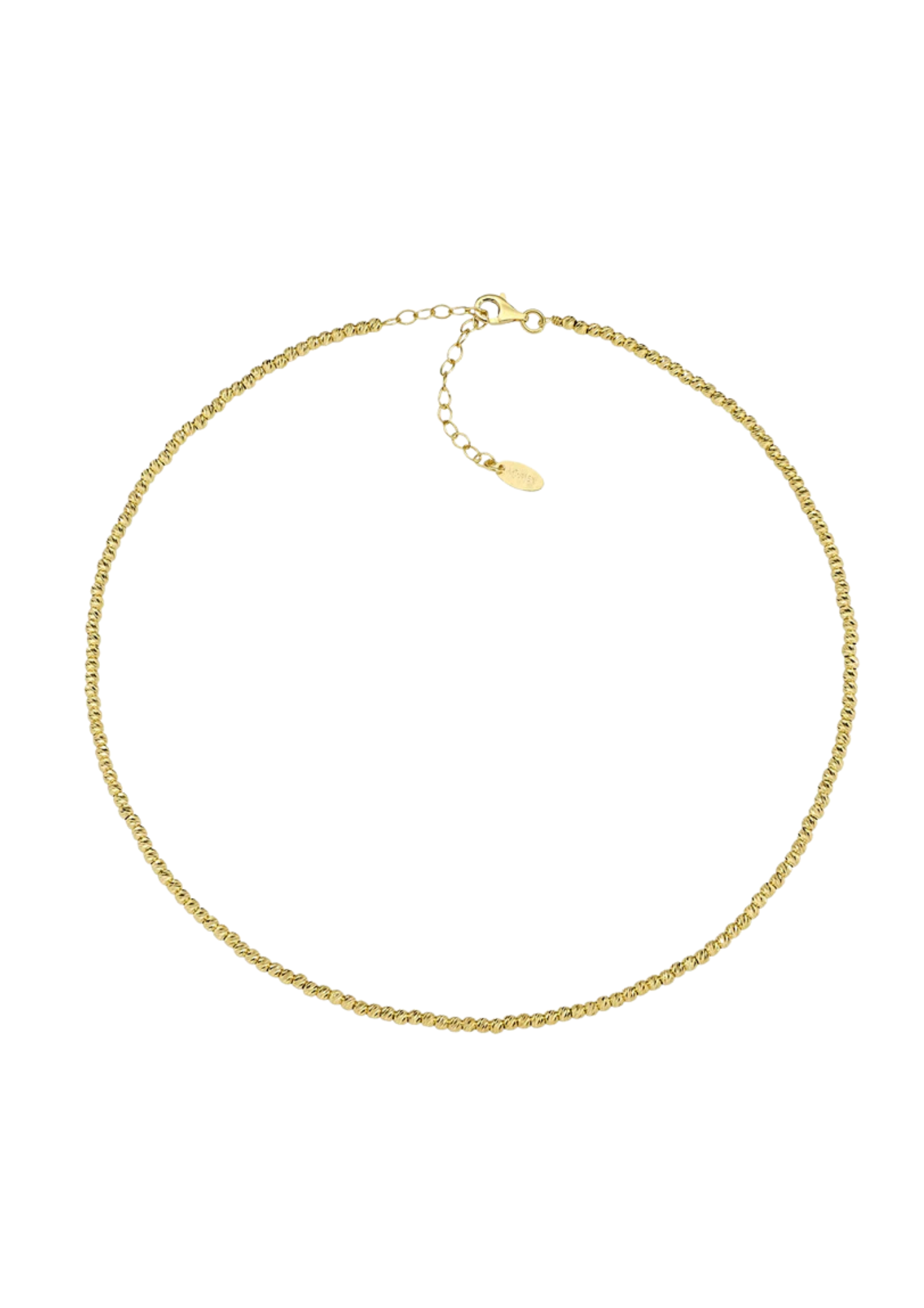Collana in argento 925 dorato con sfere diamantate da 2,5 mm. La collana ha lunghezza regolabile da 36 a 41 cm e chiusura moschettone. Con le sue sfere sfaccettate che catturano la luce e sprigionano mille riflessi, questa collana è un gioiello essenziale e sofisticato, un vero e proprio must-have all'insegna della versatilità!