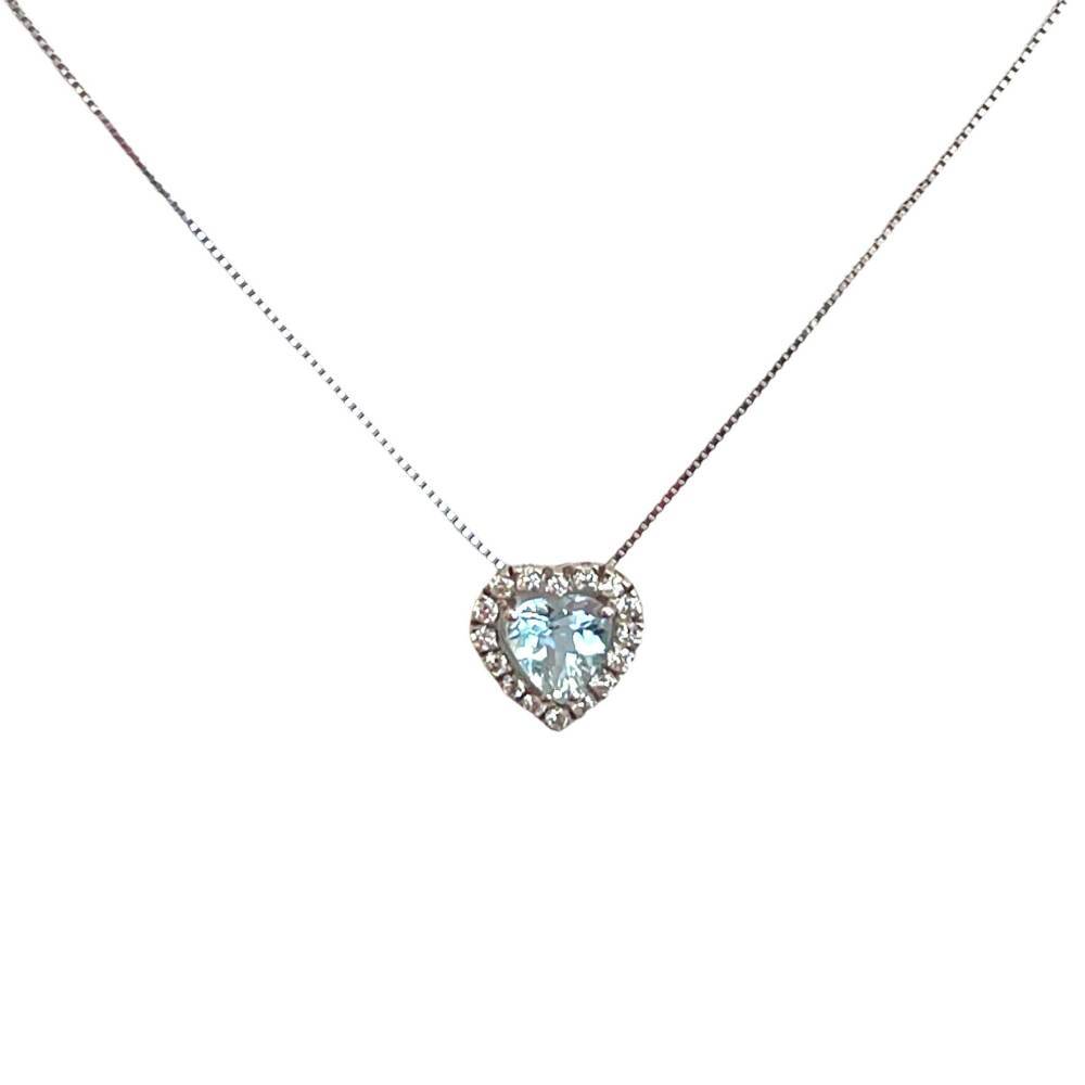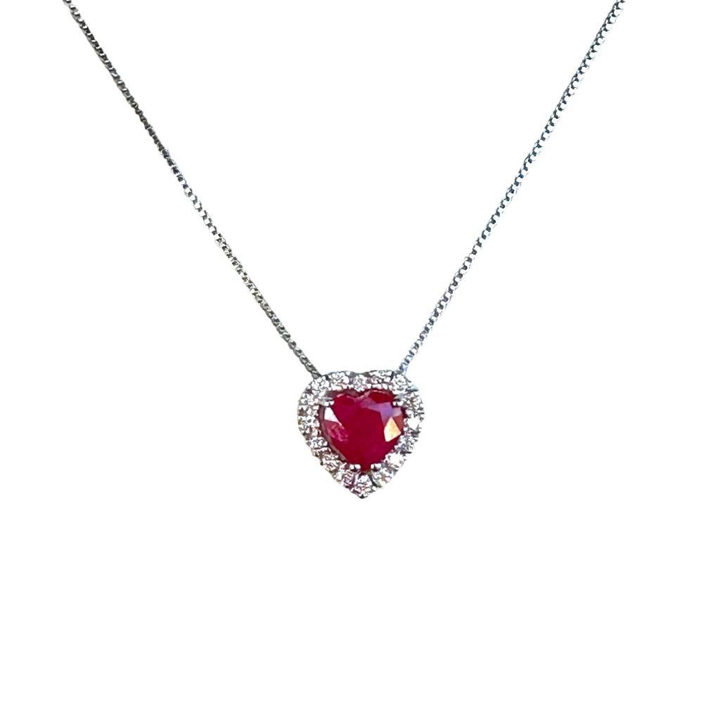 Collana in oro bianco 18 kt e Zaffiro taglio cuore da 0,43 ct e diamanti da 0,12 ct F SI.Collana in oro bianco 18 kt e Rubino taglio cuore da 0,55 ct e diamanti da 0,12 ct F SI.Collana in oro bianco 18 kt e Smeraldo taglio cuore da 0,39 ct e diamanti da 0,12 ct F SI.Collana in oro bianco 18 kt e Acquamarina taglio cuore da 0,08 ct e diamanti da 0,12 ct F SI.
