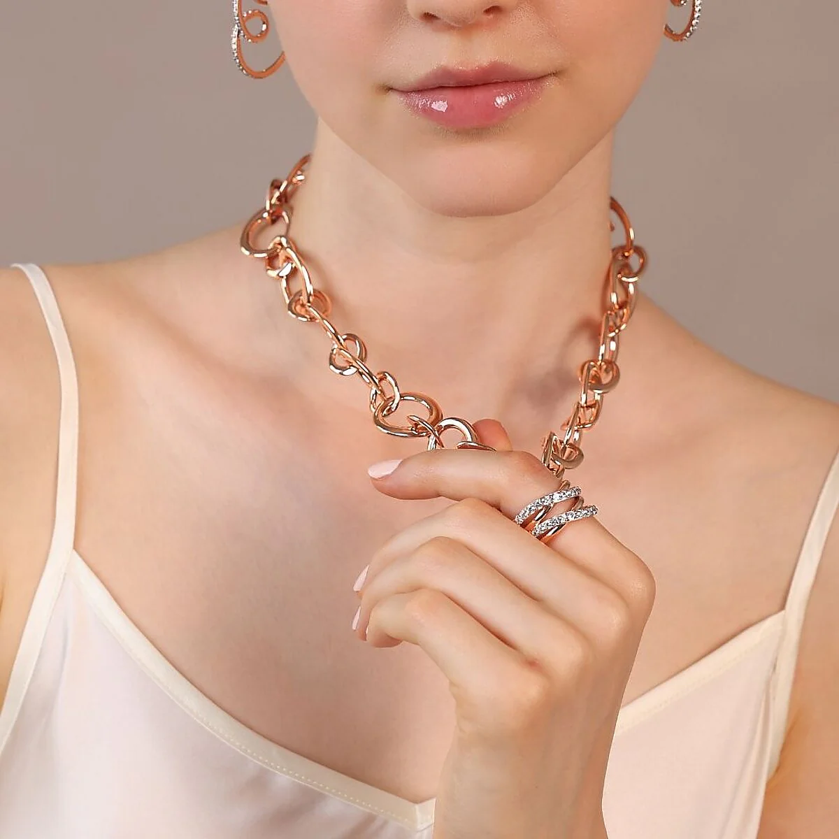 Collana girocollo Bronzallure realizzata in lega Golden Rosé, placcata Oro rosa 18kt, con maglie ovali alternate ad anelli. Lunghezza 46 cm. Chiusura a moschettone.