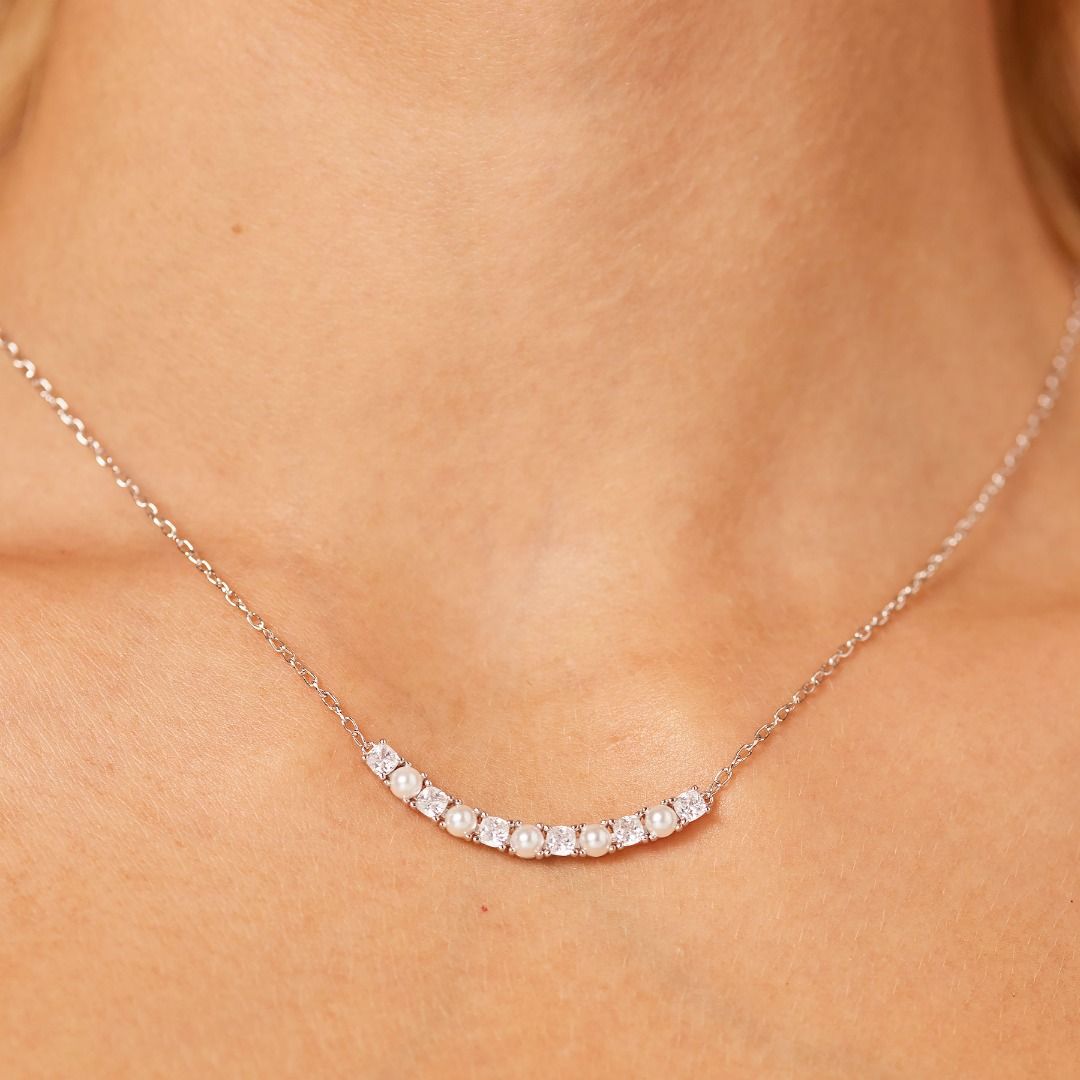 Collana girocollo in argento rodiato 925‰ con perla di conchiglia e cubic zirconia.