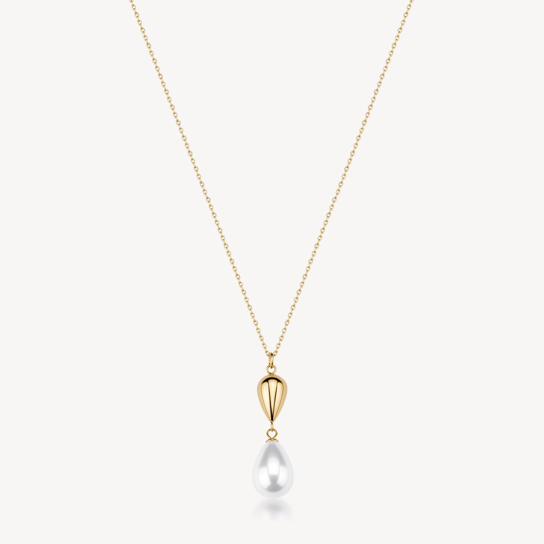 Collana girocollo in acciaio 316L e finitura pvd oro 14K, con perla di conchiglia e pendente a goccia.