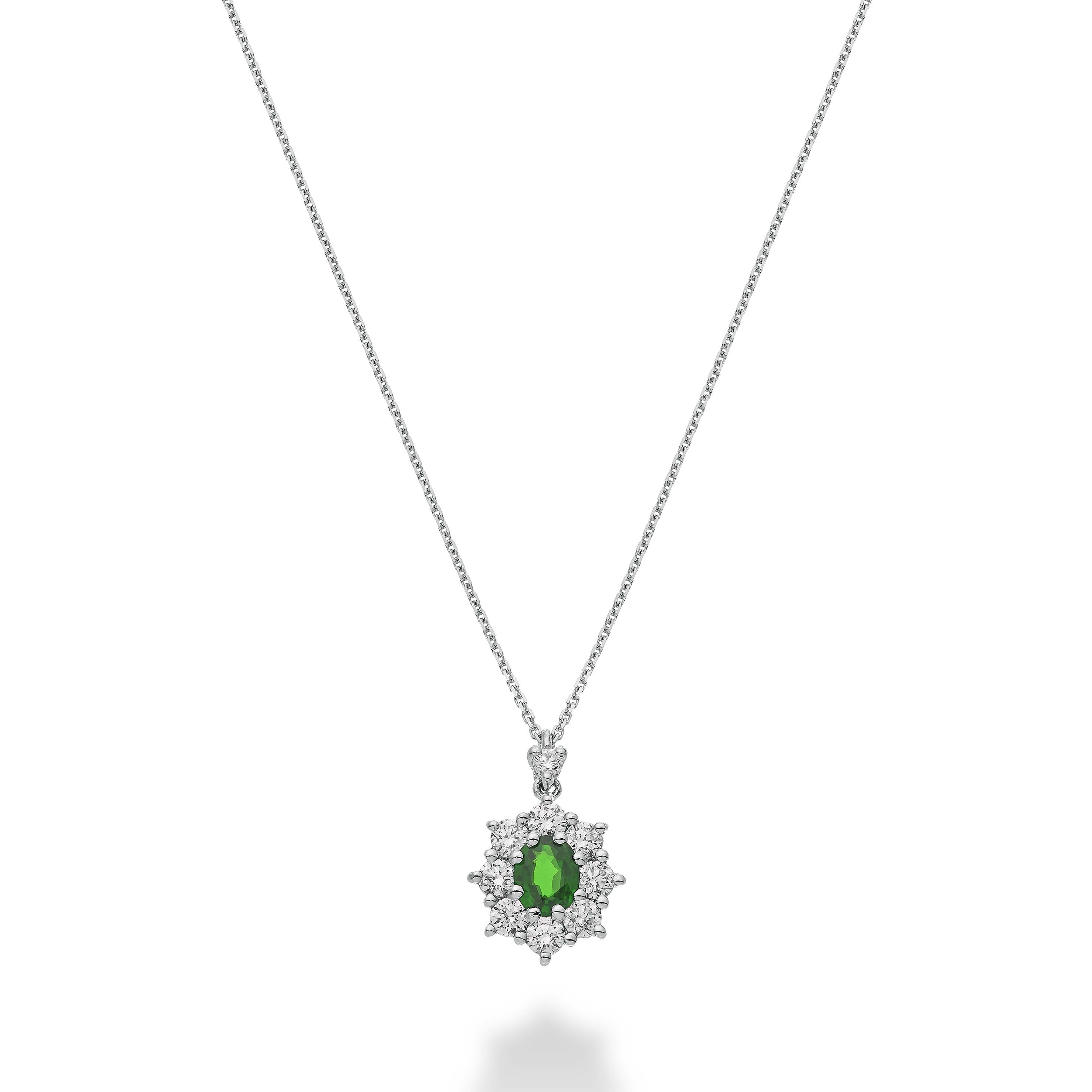 Collana Golay in Oro Bianco con Pendente con Smeraldo Naturale Taglio Ovale ct. 0,24 e Diamanti ct. 046