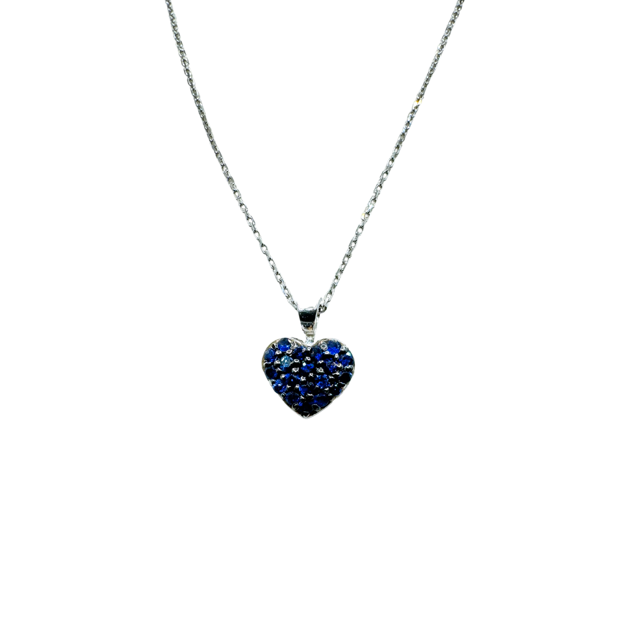 Collana Iannelli Hand Made in Oro Bianco con Pendente Cuore con Pavè di Zaffiri