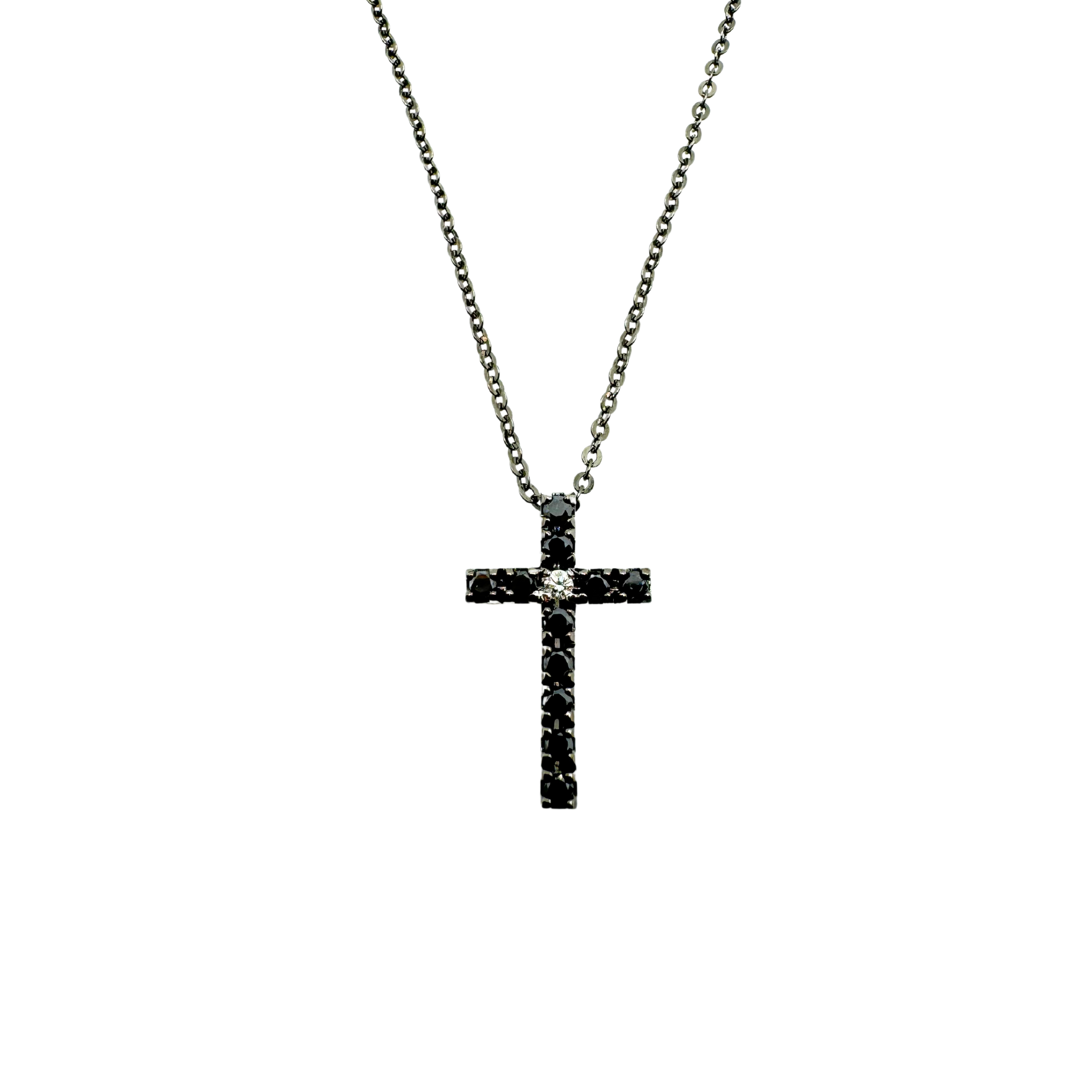 Collana Iannelli Hand Made in Oro Brunito con Croce Pendente con Diamanti Neri e Diamante Bianco