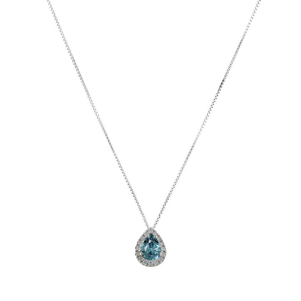 Collana in Oro Bianco con Acquamarina Taglio Goccia e Diamanti