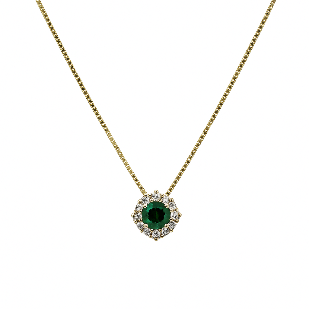 Collana in Oro Giallo 18 KT con Zirconi Bianchi e Verdi