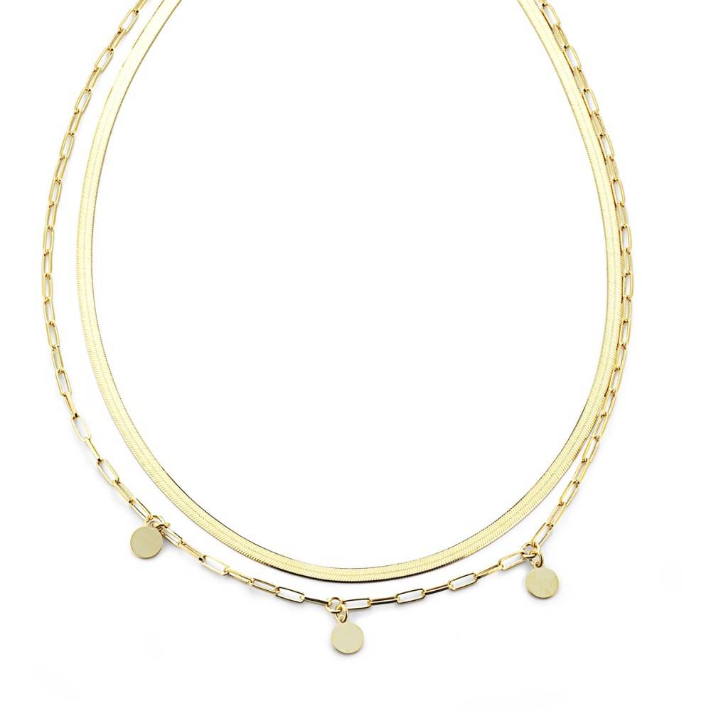 Collana in argento 925 con galvanica in oro giallo 18 kt di Marcello Pane. Composta da due fili una maglia snake e una maglia a catena.