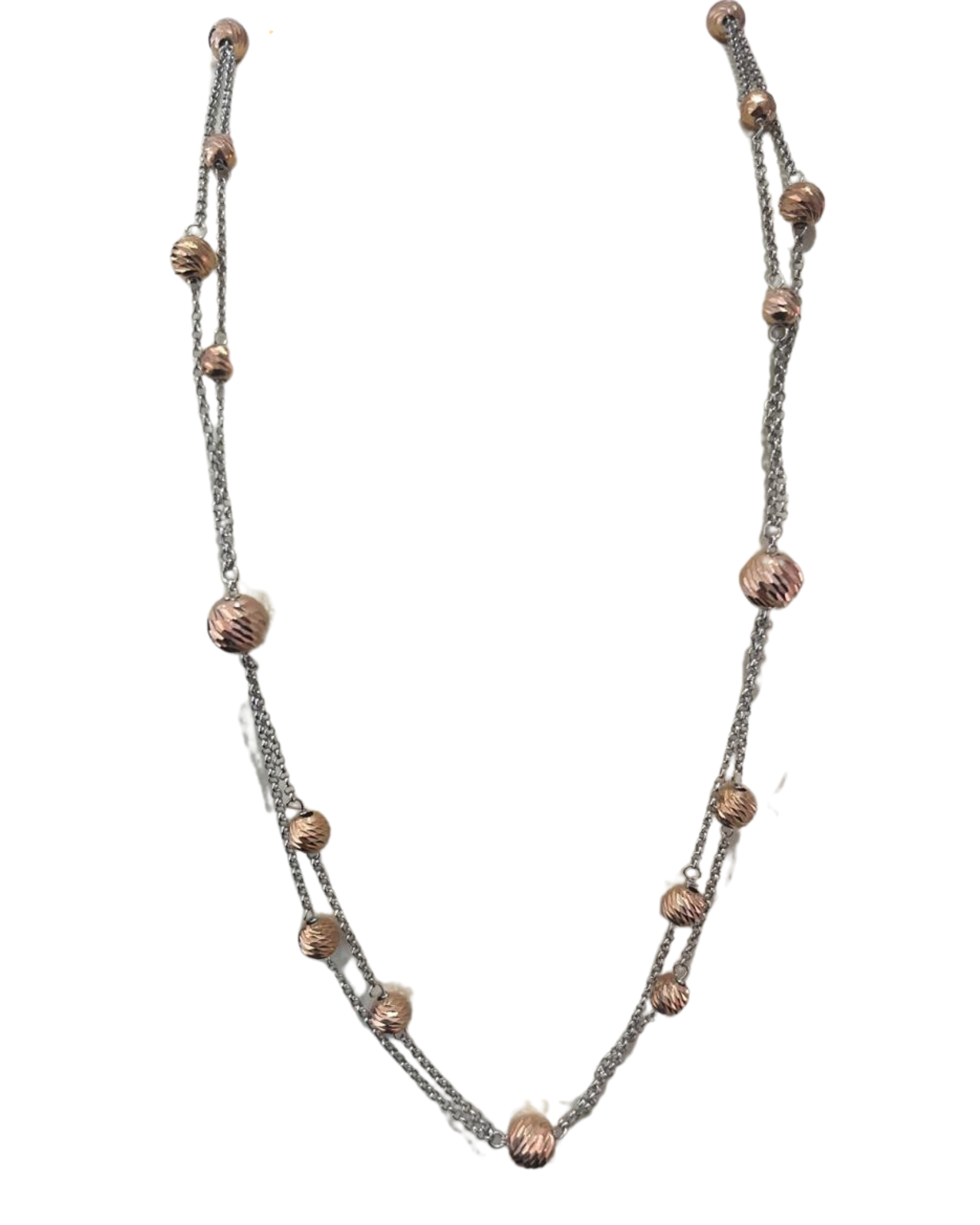 Collana Marcello Pane da donna della collezione Petite Boules in argento 925. Lunghezza 70 cm. La collana presenta delle microsfere sfaccettate rosè.
