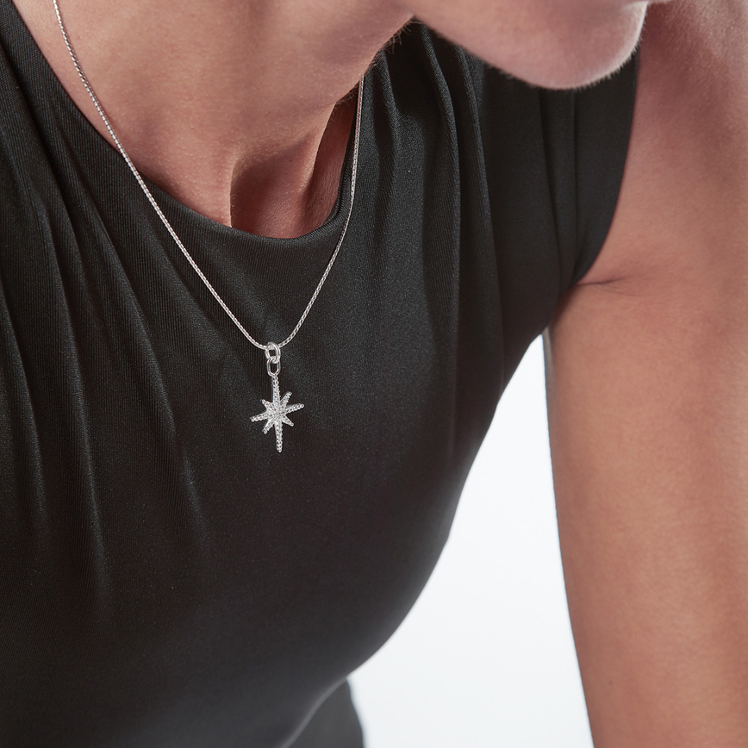 Che si tratti di sé o di qualcuno di speciale, Il pendente zirconato Polaris, ispirato alla stella polare, illumina il collo di chi per noi sarà sempre un punto di riferimento. La Collana Pendente Stella Polaris, fa parte della Collezione Opulence ed è realizzata in Argento 925. Questo gioiello viene proposto con una finitura Rodio Lucido ed è disponibile in taglia unica.