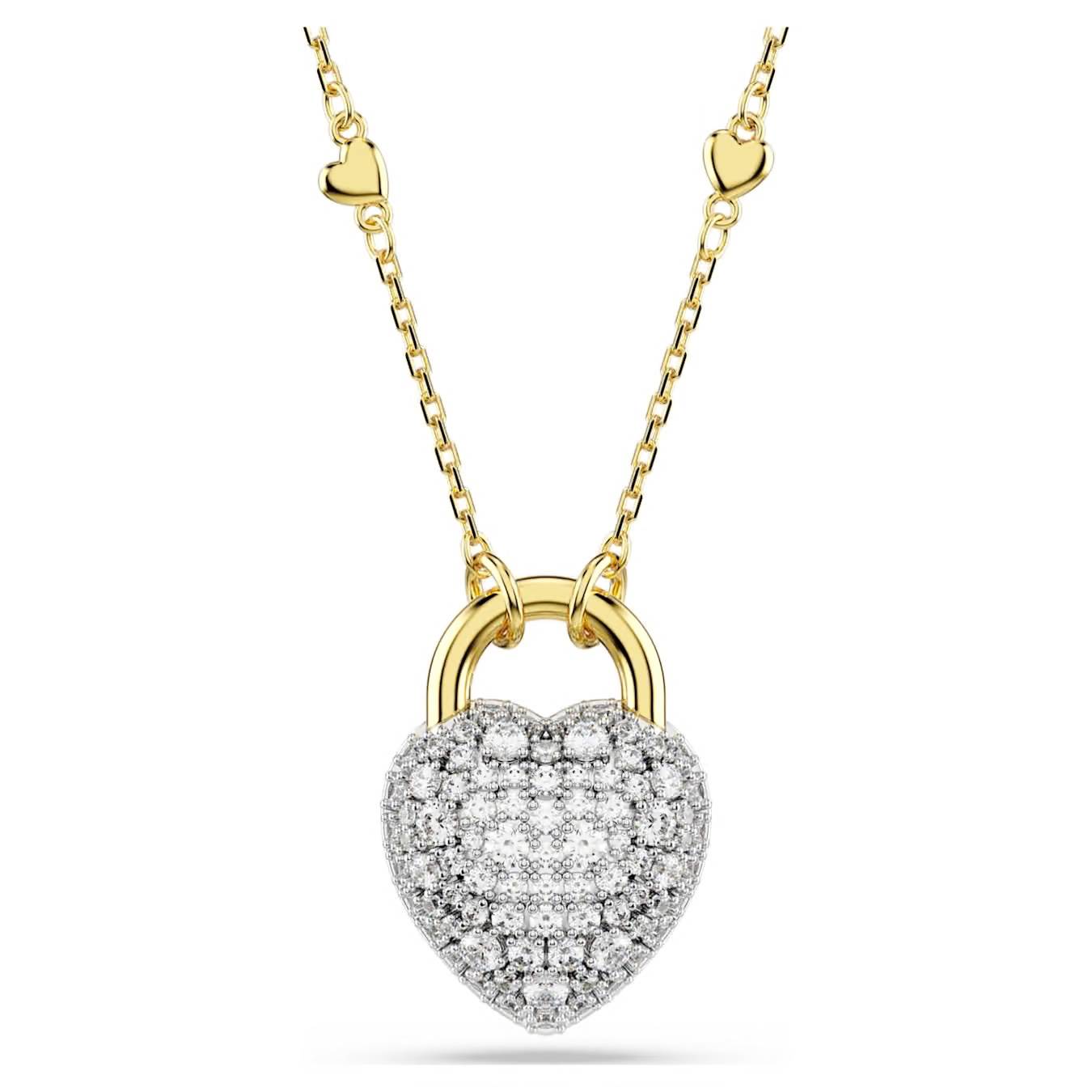 Simboleggiando i segreti dell’amore, il romantico pendente presenta un motivo a cuore ispirato a un medaglione, che può essere facilmente ruotato per mostrare due lati diversi. Su un lato, una superficie placcata rodio con un singolo cristallo a forma di cuore, e sull’altro, una radiosa incastonatura di Swarovski Zirconia in stile chatonnage. Il motivo è sospeso a una delicata catena in tonalità oro, anch’essa decorata con piccole bead a forma di cuore.