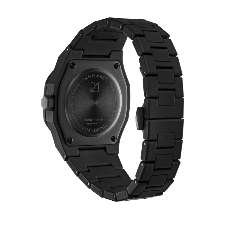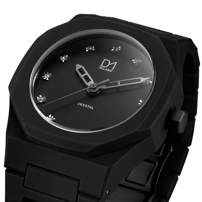 Orologio D1 Milano collezione Crystal con movimento al quarzo giapponese, cassa 40,5 mm e cinturino in policarbonato, vetro minerale, rivestimento soft touch e 5ATM impermeabile.