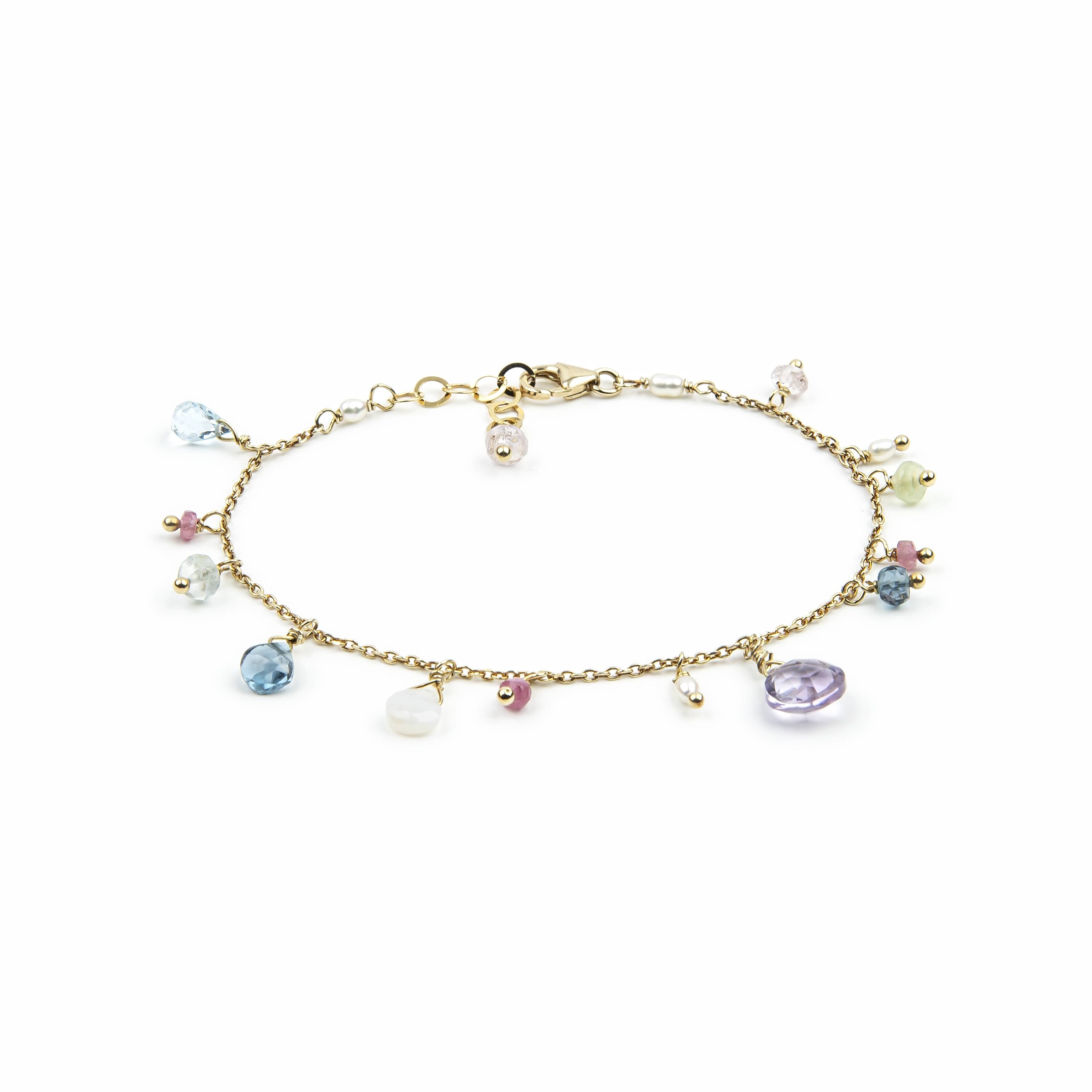 Bracciale Ishwara in argento 925 placcato oro giallo 18kt con pietre naturali.