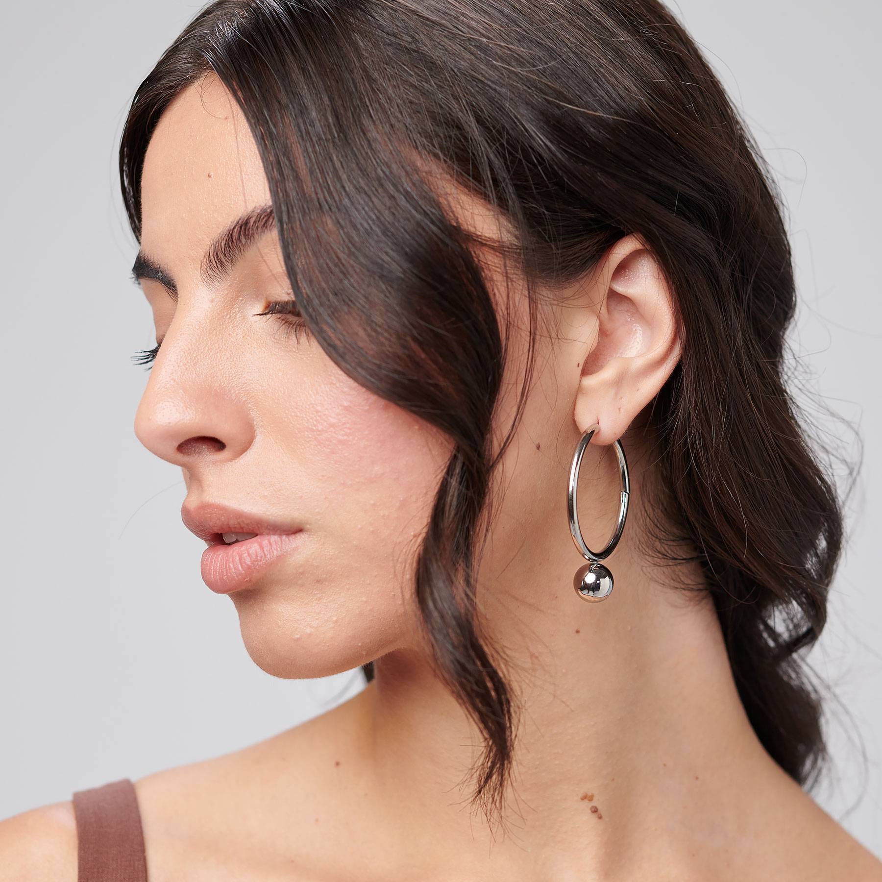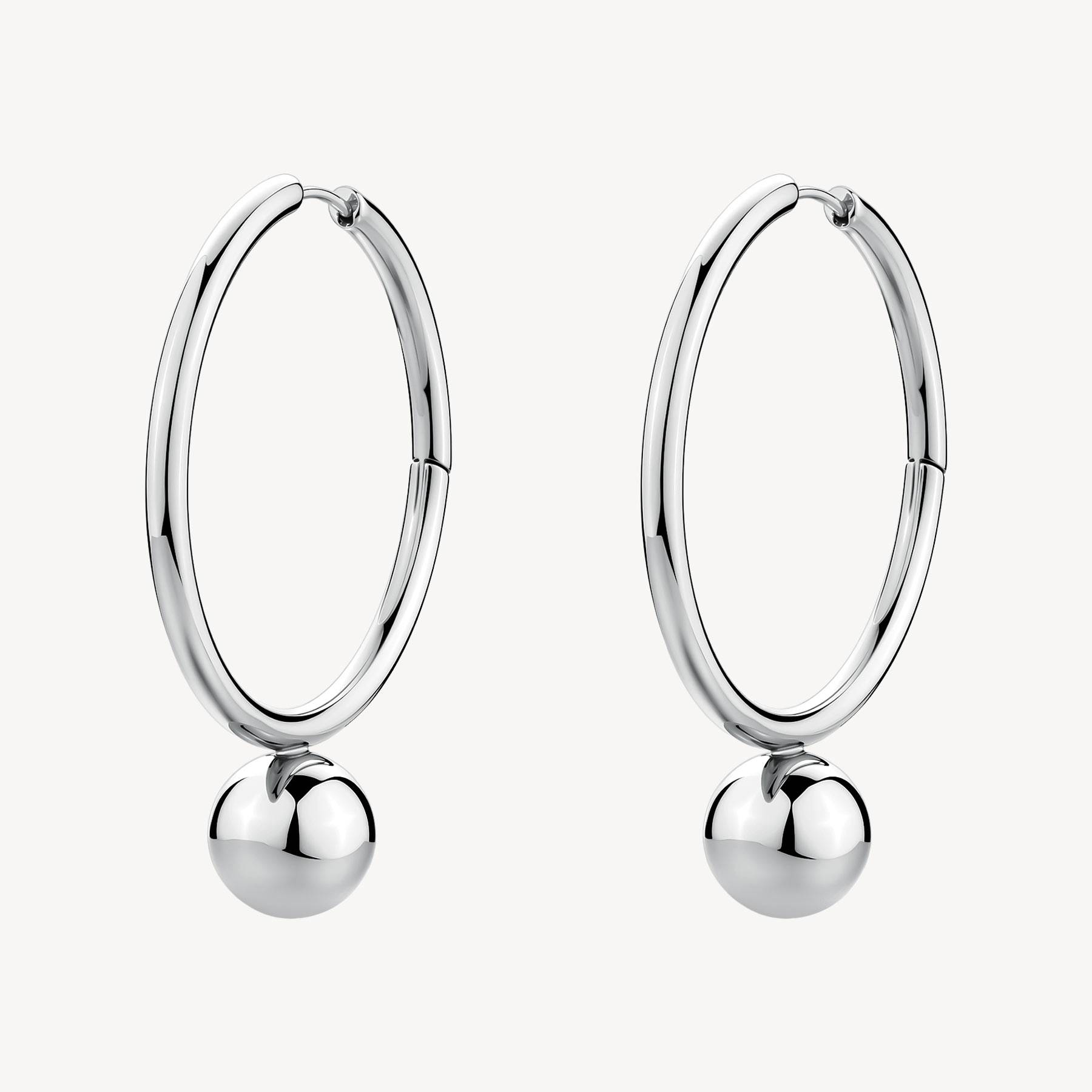 Orecchini a cerchio in acciaio 316L e pendenti a sfera.