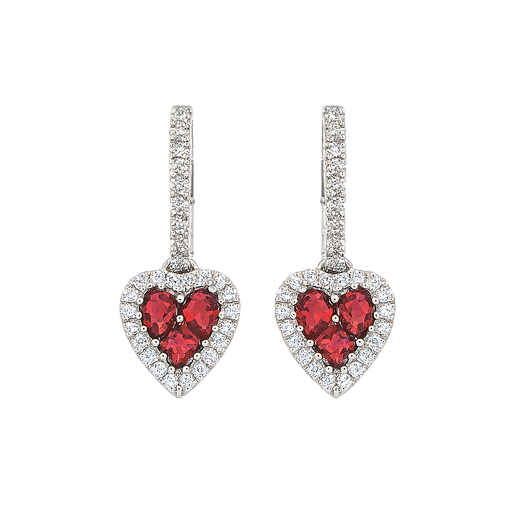 Orecchini Cuori Davite&Delucchi Pendenti in Oro Bianco con Rubini e Diamanti