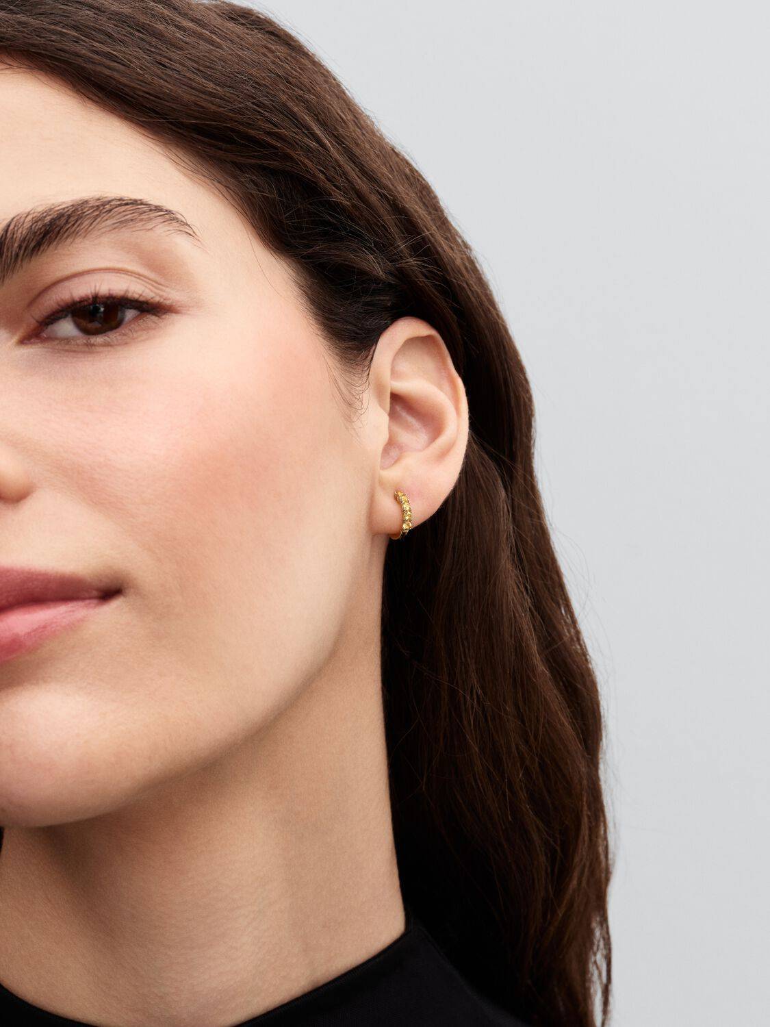 Aggiungi un tocco di colore al tuo look con questi raffinati orecchini a cerchio, con una fila di cristalli gialli brillanti.
