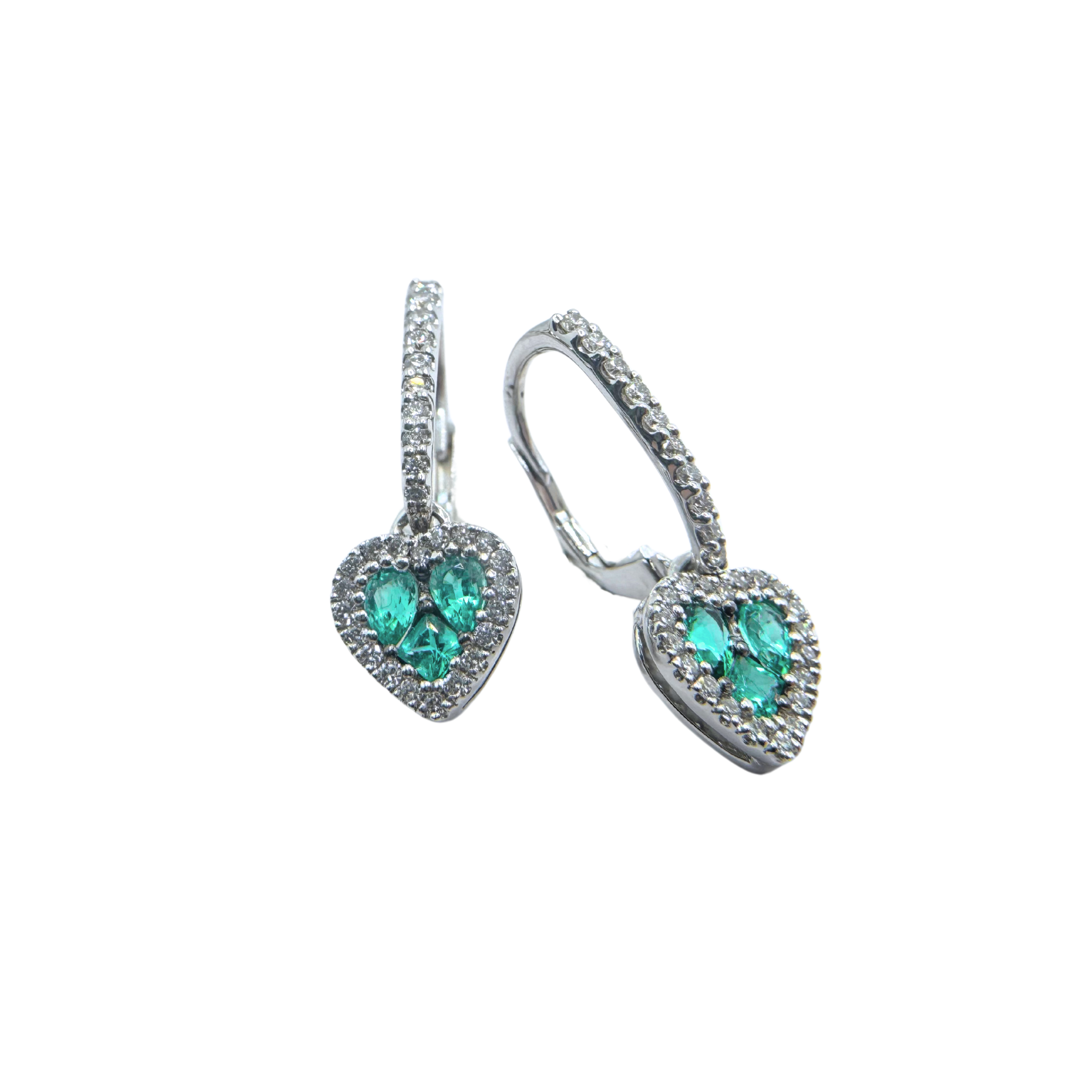 Orecchini Pendenti Davite&Delucchi con Cuori in oro Bianco con Diamanti e Smeraldi