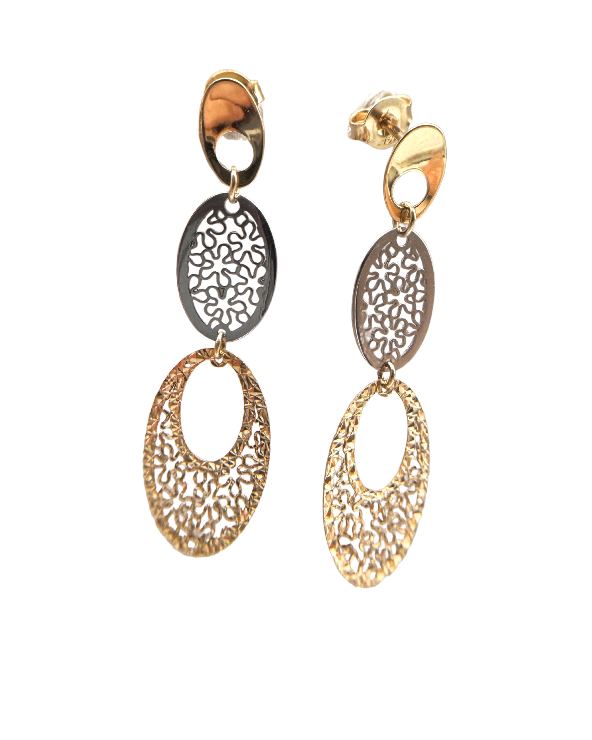 Orecchini Pendenti Lavorati in Oro Giallo e Bianco