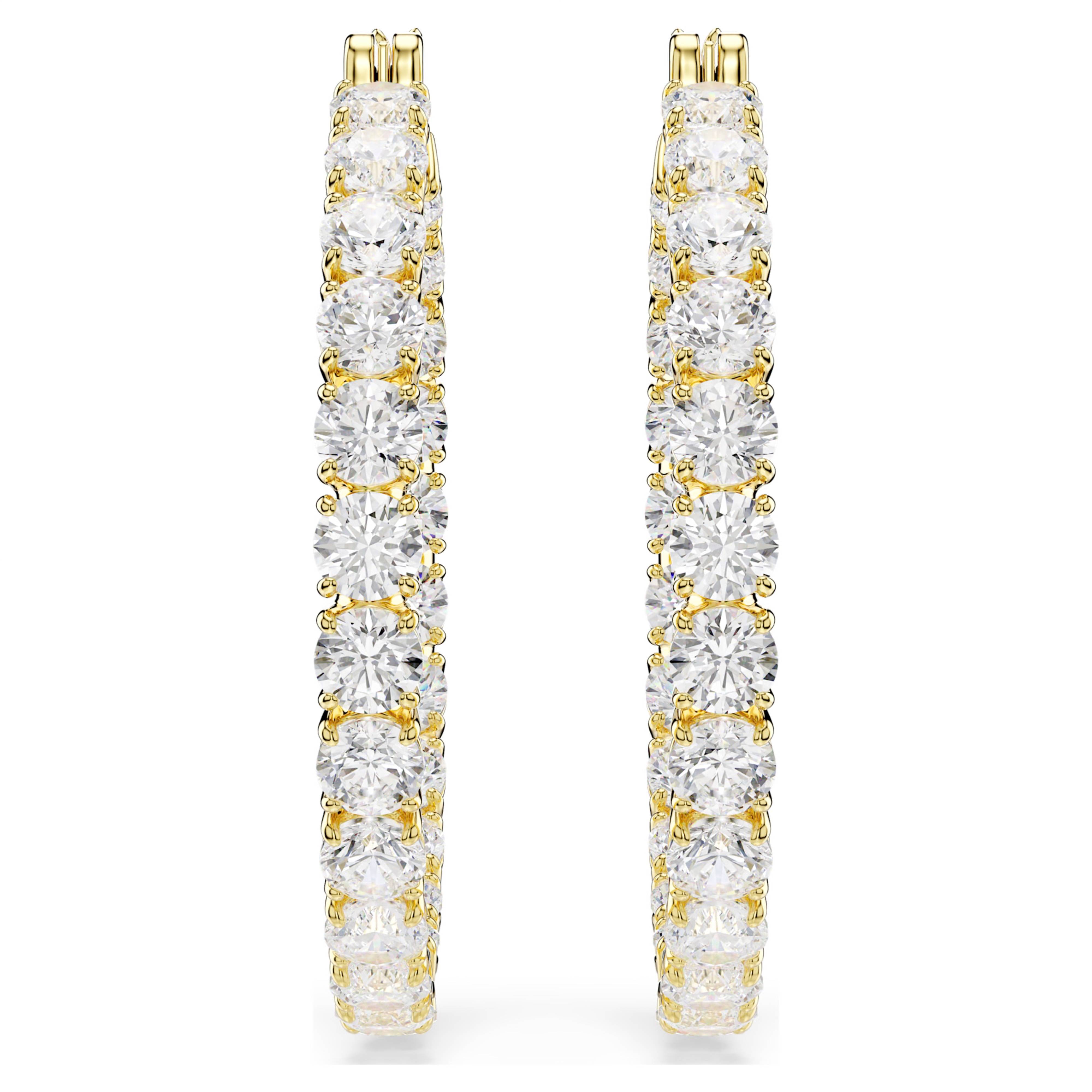 Gli orecchini a cerchio Matrix dalla forma perfetta sono definiti dal look intramontabile dei cristalli taglio Round e dal metallo placcato in tonalità oro. È una combinazione sublime, essenziale per qualsiasi portagioie. Scegli gli orecchini a cerchio quando desideri rivestirti di pura radiosità.