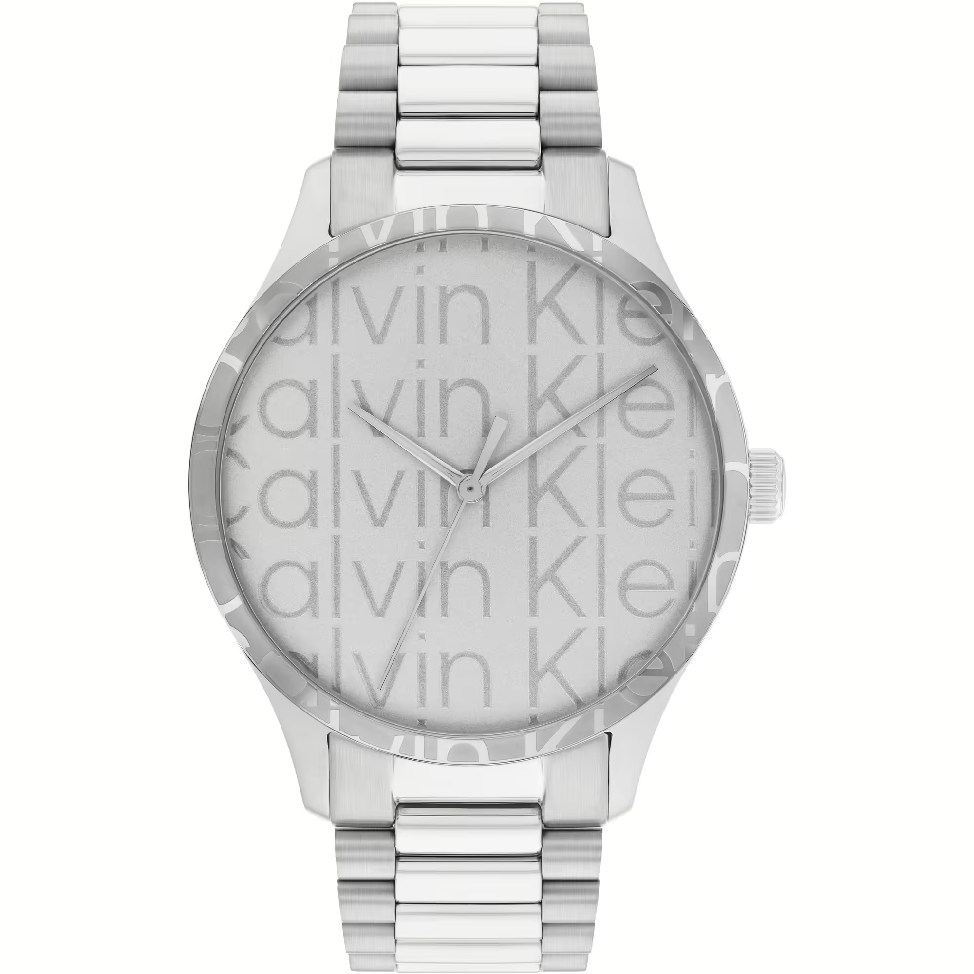 Orologio unisex di Calvin Klein della collezione Iconic. Orologio solo tempo con movimento al quarzo 3 sfere e resistenza all'acqua di 3 atm. La cassa, di forma tonda, è realizzata in acciaio inossidabile ed è di colore argento. Diametro cassa: 42 mm. Il quadrante è di colore argento. Il cinturino è realizzato in acciaio inossidabile ed è di colore argento.