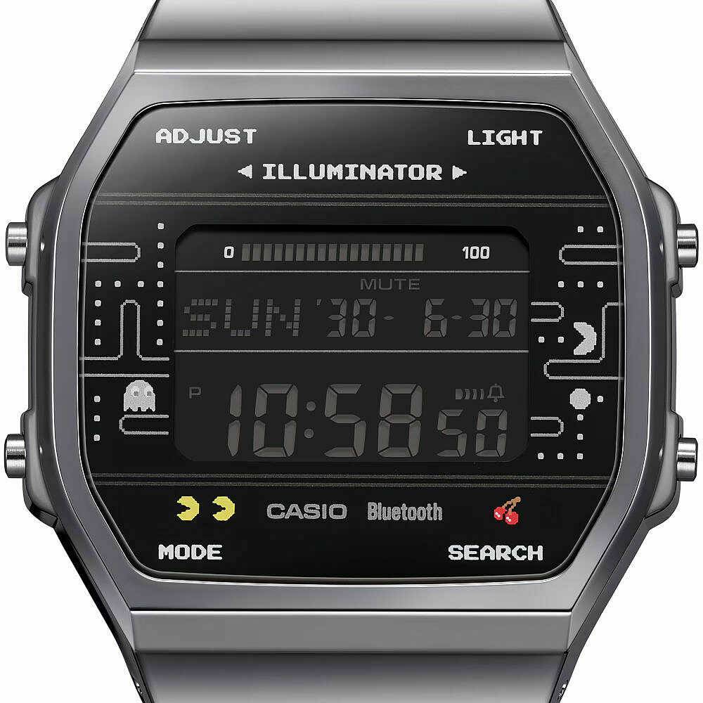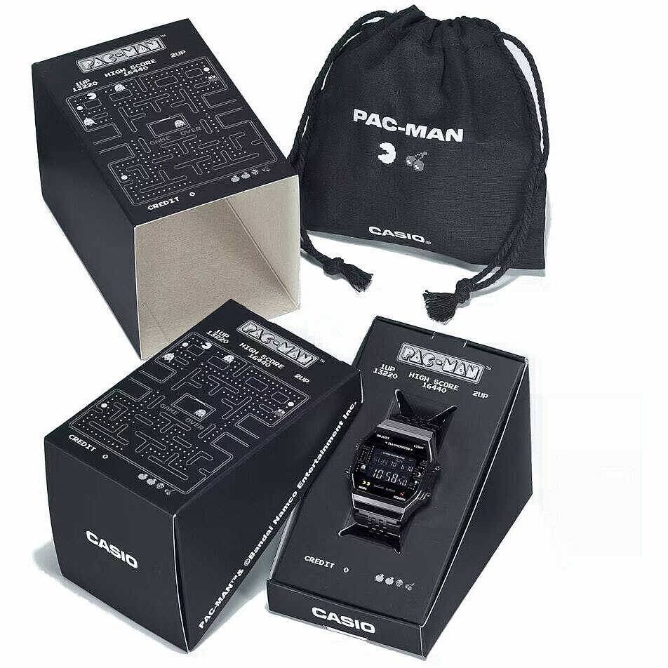 Orologio Casio Limited Edition PAC-MAN realizzato in acciaio cromato nero con una dimensione di 41x38 mm.Movimento al quarzo digitale con funzioni di Cronometro, Promomoria sonoro, Luce, Calendario, Led.Funzioni di connessione allo smartphone e all'app CASIO Watches con le seguenti carratteristiche:Regolazione orologio automaticaImpostazione semplice dell'orologioOra internazionale di circa 300 cittàDati Life LogOra e posizioneTrova telefono Orologio completo di scatola originale Limited e garanzia ufficiale di 2 anni.