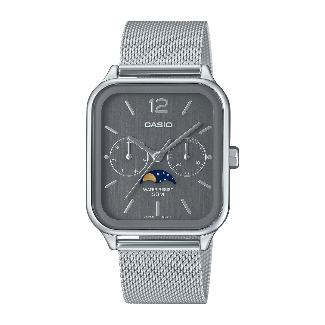 Il Casio MTP-M305M-8AVER è un orologio dal design elegante e contemporaneo, pensato per chi cerca uno stile raffinato unito a funzionalità pratiche. La cassa in acciaio inox si abbina perfettamente al bracciale in maglia milanese, leggero e confortevole, che conferisce un tocco moderno ed essenziale al polso.