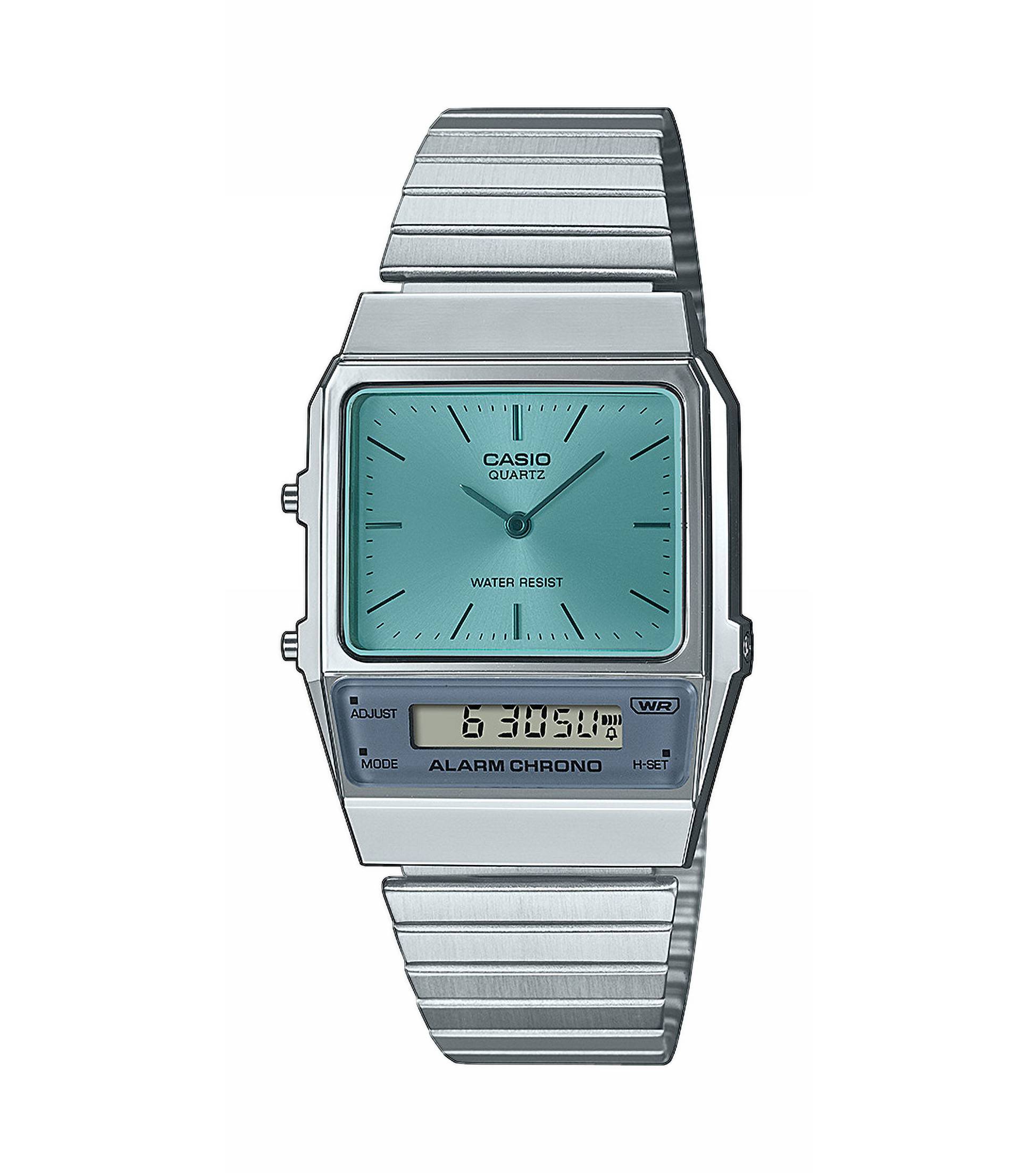 Fai un salto negli anni '80. Con un vetro colorato, il design di AQ-450 si rinnova grazie a una splendida fusione tra look retrò ed eleganza. Il quadrante doppio ma separato e il display LCD offrono la bellezza analogica ma prestazioni digitali, mentre la forma angolare dello schermo LCD conferisce un dettaglio alla moda che richiama lo stile anni '80. La sveglia, il cronometro e il doppio fuso orario semplificano la vita nelle operazioni quotidiane e l'impermeabilità lo rende perfetto anche nelle giornate piovose. Elegante e pratico, con un look neo-vintage che ripropone nostalgicamente il meglio di quell'era.