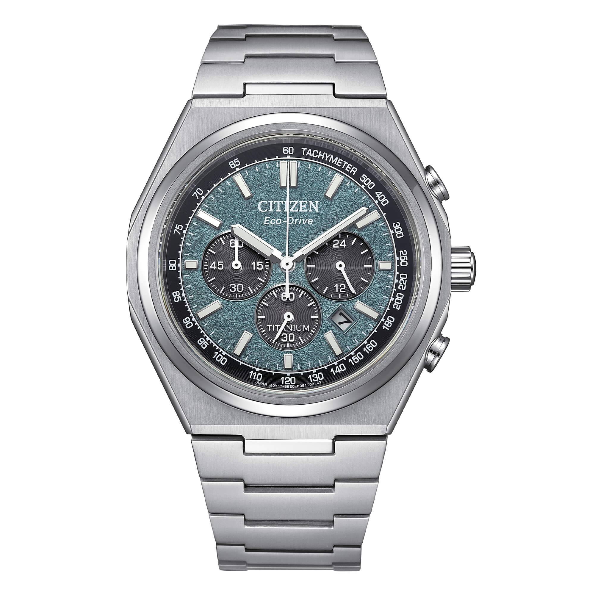 Cassa e bracciale realizzati in titanio Grado 2 lavorato con la tecnologia esclusiva Citizen Duratec che conferisce un elevato livello di finitura estetica attraverso l’alternanza di superfici lucide e spazzolate e al tempo stesso ne incrementa la resistenza all’abrasione di oltre 5 volte rispetto all’acciaio inox. Fondo serrato a vite. Quadrante con pattern materico ispirato alla granulometria tipica del titanio. Vetro zaffiro. WR 10 bar.