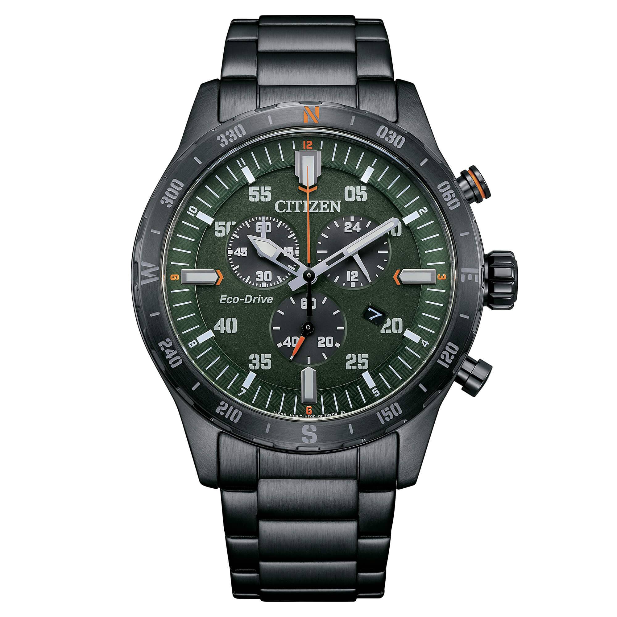 Movimento: Eco Drive a carica luce con riserva di carica di 180 giorni. Funzioni: Cronografo a 1/5 di sec. fino a 60 minuti. Caratteristiche: Cassa in acciaio con fondo serrato a vite. Bracciale in acciaio con chiusura di sicurezza. WR 10 bar.