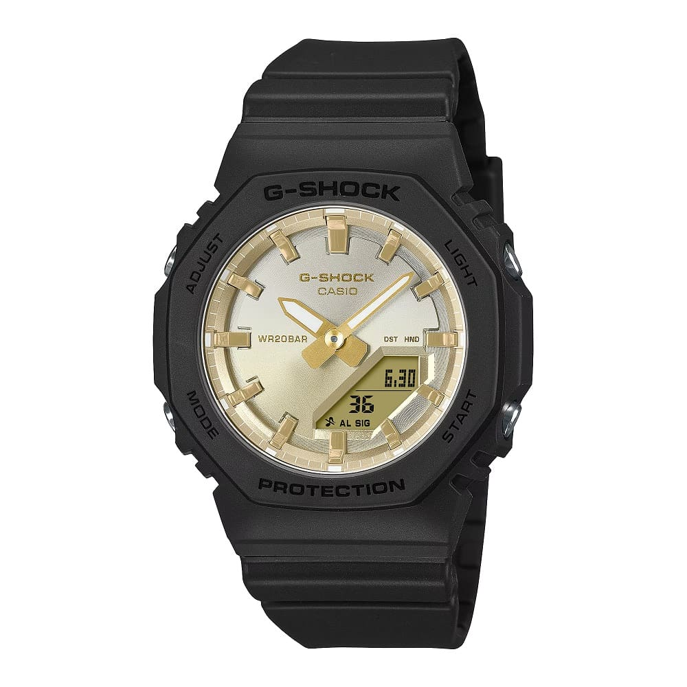 Immergetevi nello splendore di un orologio ispirato agli straordinari tramonti estivi. Il luccichio del sole che tramonta sull'acqua alla fine di una splendida giornata estiva è catturato utilizzando la deposizione di vapore in una gradazione luminosa di nuovi colori sul quadrante.Iniziamo con il GMA-P2100, una versione ancora più compatta del popolare GMA-S2100 con combinazione digitale-analogica e regoliamo la lunghezza del cinturino per adattarlo meglio ai polsi più sottili. Abbiamo eliminato l'originale quadrante a incasso a ore 9 per un look essenziale e minimalista e utilizzato l'acciaio inossidabile per la fibbia e i pulsanti laterali per aggiungere un tocco di lusso.I componenti in resina principali utilizzati nella lunetta e nel cinturino sono realizzati con resine a base biologica. Prodotto utilizzando risorse biologiche rinnovabili, questo materiale contribuisce a ridurre l'impatto ambientale.