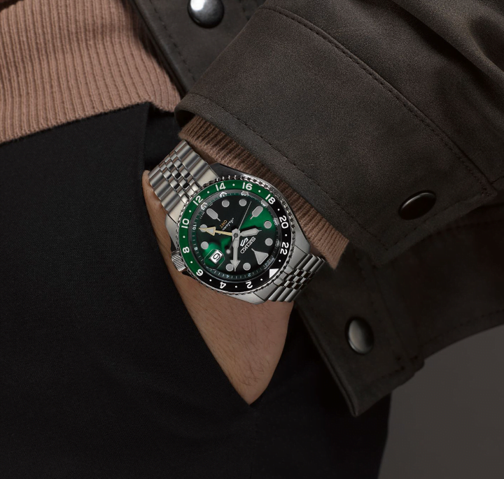 Cinturino in acciaio Jubilée, con triplice chiusura pieghevole con pulsante di sicurezza e di rilascio, fondello trasparente serrato a vite e resistenza di 100 metri . Cassa di 42.5 mm in acciaio , quadrante Verde e lunetta girevole bidirezionale sfumata nero verde . La funzione GMT, che permette facilmente la regolazione dell’ora in base agli spostamenti geografici, semplicemente muovendo la lancetta 24h sul quadrante.