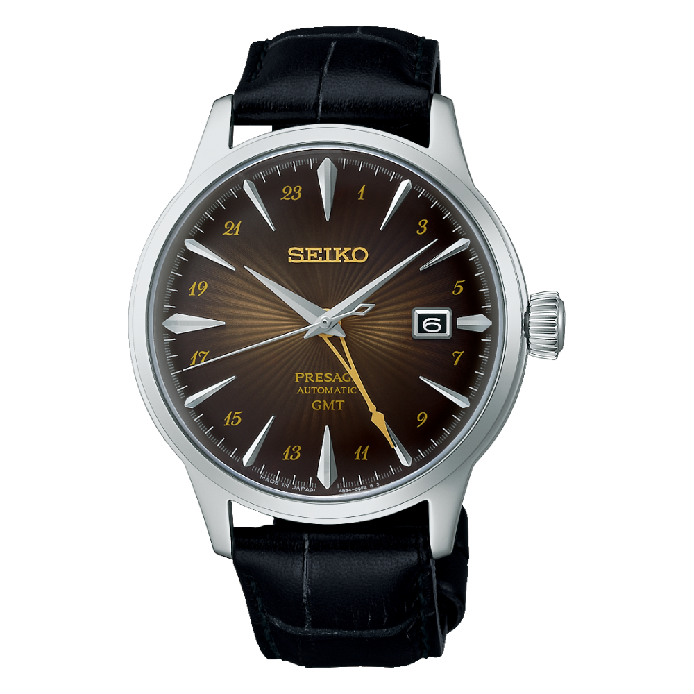 Il nuovo Seiko Presage Cocktail GMT “Rusty Nail” presenta un quadrante brunito, che rende omaggio a un cocktail di whisky scozzese e Drambuie, con una traccia di fumosità e miele.La linea Cocktail, un punto fermo della collezione Présage fin dal lancio del SARB065, offre orologi eleganti con quadranti dai colori scintillanti e finiture a raggi di sole. Ad ogni nuovo lancio, questa gamma si arricchisce di nuovi colori, nuove funzioni e numerose edizioni limitate ispirate alla cultura giapponese e al famoso Star Bar del quartiere di Ginza. Sempre nei colori di uno dei cocktail tipici del bar, questo nuovo modello offre una funzione mai vista prima nella linea: la lancetta GMT. La lancetta, a forma di stelo di bicchiere da cocktail, colloca l'orologio in una nuova dinamica di eleganza e di viaggio. La linea presenta anche alcuni colori classici e altri nuovi.