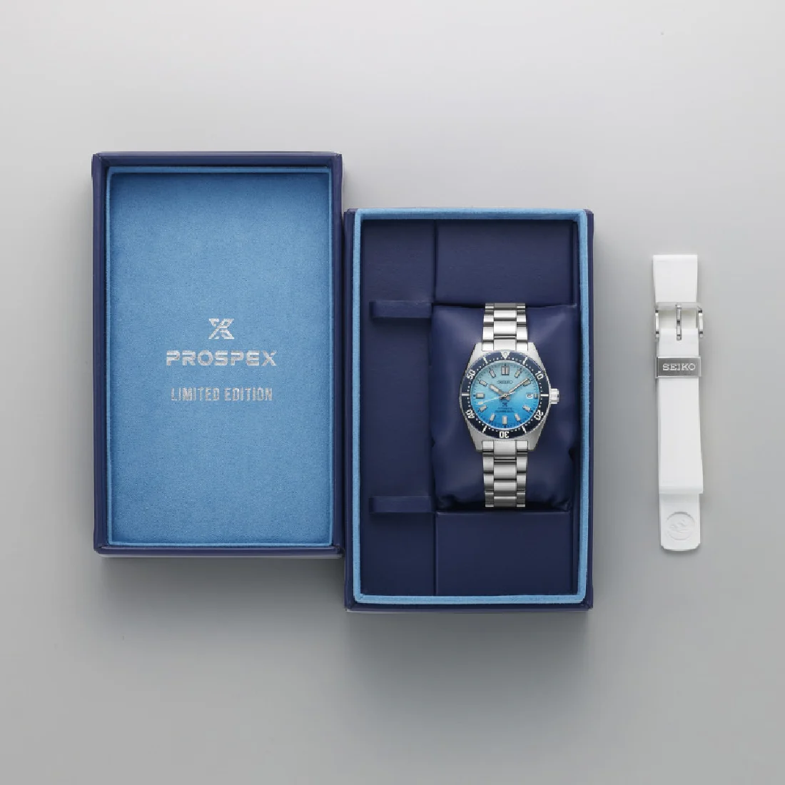 Orologio Seiko Prospex SPB473J1 in edizione limitata a 1000 pezzi con un magnifico quadrante blù bianco degradè dai colori del mare di Zacinto con un disegno stampato che riprende la forma delle onde.Cassa riedizione del 62MAS storico modello del 1965 dalle linee molto pulite è adatto ad un uso intensivo ma allo stesso tempo perfetto indossato con giacca e cravatta.La cassa da 40,5mm è in acciaio anticorrosione resistente fino a 200mt e con rivestimento antigraffio. Il movimento, realizzato in casa con 70 ore di ricarica, è particolarmente curato per renderlo duraturo e affidabile.