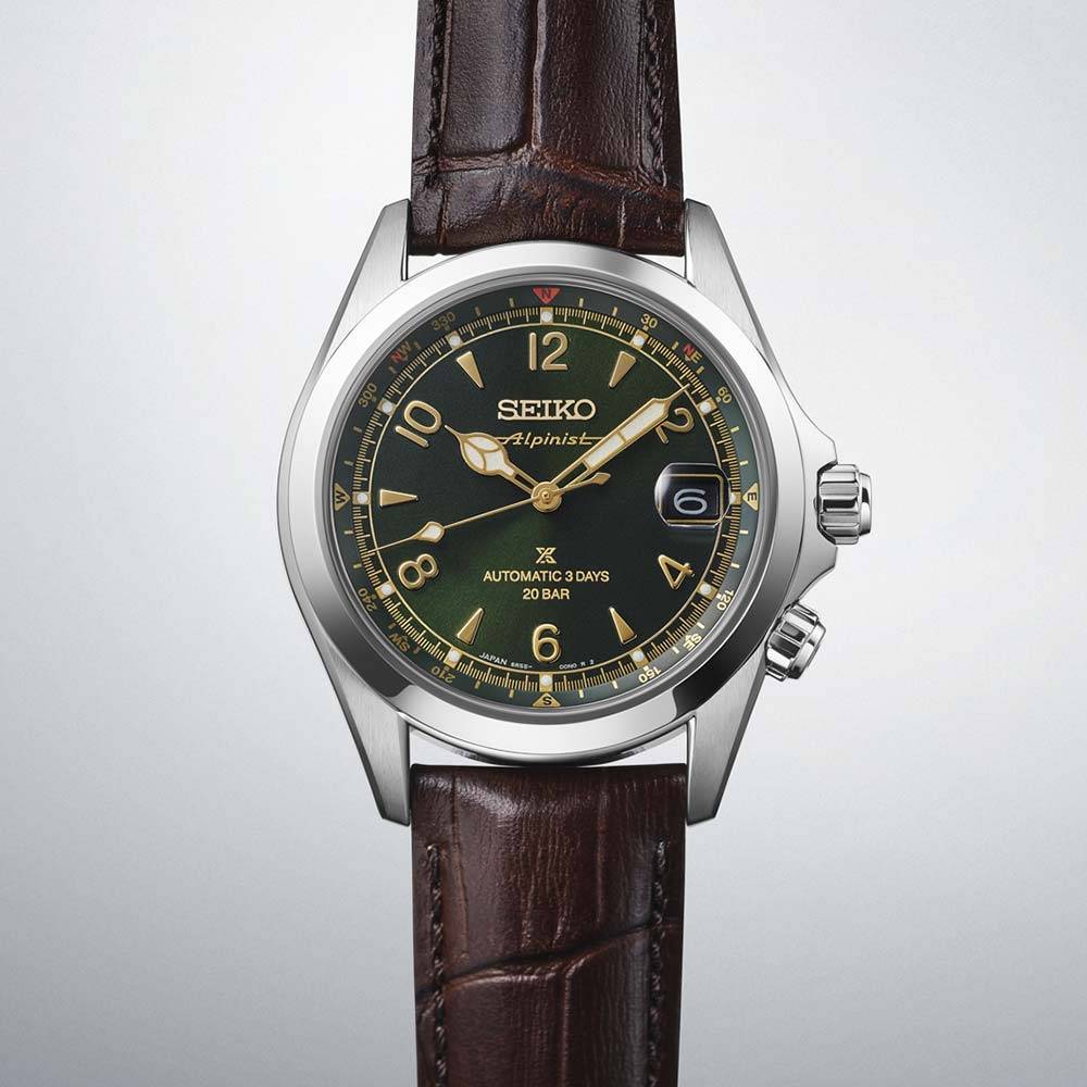 Seiko SPB507J1 con movimento meccanico automatico, calibro 6R55 con 41 ore di riserva di carica, 24 rubini.Cassa in acciaio inossidabile, diametro 39.5 mm e spessore 12.7 mm.Corona e fondello a vite, lunetta girevole unidirezionale. Anello interno della bussola girevole.Vetro zaffiro bombato, ricoperto internamente per l’anti-riflesso.Cinturino in pelle di vacchetta marrone con chiusura a déployante con logo Seiko.Quadrante verde con lancette e indici in lumibrite per la visione al buio placcate oro. Logo Seiko a ore 12, datario a ore 3 con lente d’ingrandimento.Orologio accompagnato da garanzia e confezione ufficiali Seiko.