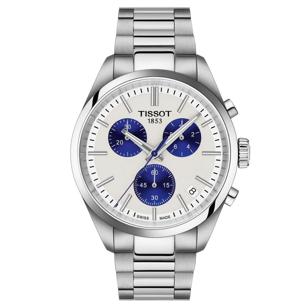 L’orologio Tissot PR 100 Chronograph T150.417.11.110.0 unisce eleganza e funzionalità in perfetto stile Swiss Made. Realizzato in acciaio 316L con quadrante madreperla e vetro zaffiro antigraffio, racchiude un movimento al quarzo di precisione. Impermeabile fino a 100 metri, è ideale per chi cerca un segnatempo raffinato, sportivo e affidabile per ogni occasione.