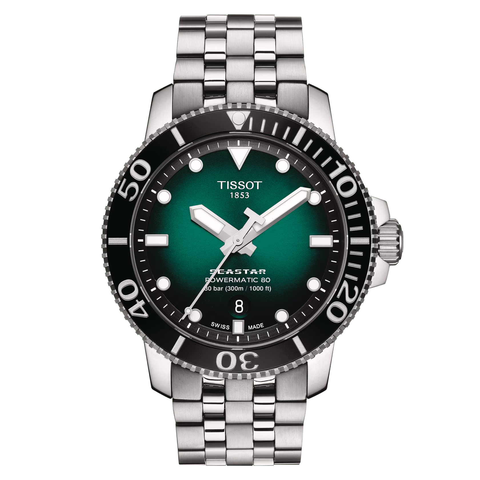 Il Tissot Seastar 1000 è l'orologio per gli amanti del mare per eccellenza grazie all'elevata impermeabilità fino a 30 bar (300 m/1.000 ft), al binomio fondello e corona a vite e ad una lunetta unidirezionale in ceramica. Il modello monta un movimento automatico.
