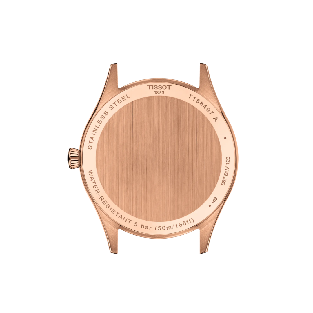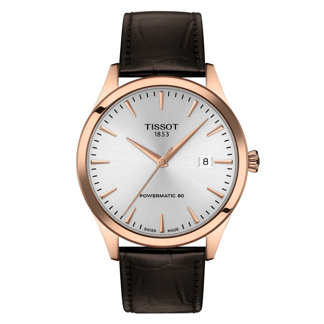 L’orologio Tissot Classic Dream Powermatic 80 rappresenta l’essenza dell’eleganza senza tempo unita alla tecnologia svizzera più affidabile. Realizzato in acciaio 316L con finitura PVD oro rosa, questo segnatempo da 40 mm esprime stile e raffinatezza in ogni dettaglio. Il quadrante argentato con indici applicati e data a ore 3 è protetto da vetro zaffiro antigraffio, garanzia di durata e trasparenza nel tempo.All’interno batte il movimento automatico Powermatic 80, con riserva di carica fino a 80 ore e spirale Nivachron antimagnetica, per un funzionamento stabile e preciso.Completano l’orologio il cinturino in pelle marrone tipo alligatore e l’impermeabilità fino a 5 bar (50 m), caratteristiche che lo rendono ideale per l’uso quotidiano con un tocco di classe.Punti di forza:– Movimento automatico Swiss Made con 80 ore di autonomia.– Cassa PVD oro rosa da 40 mm, elegante e moderna.– Design “dress casual”: perfetto con abiti formali o look smart-casual.– Vetro zaffiro antigraffio e spirale Nivachron per massima affidabilità.– Qualità Tissot / Swiss Made, garanzia di valore e precisione nel tempo.L’orologio perfetto per l’uomo che cerca uno stile sobrio, contemporaneo e intramontabile.