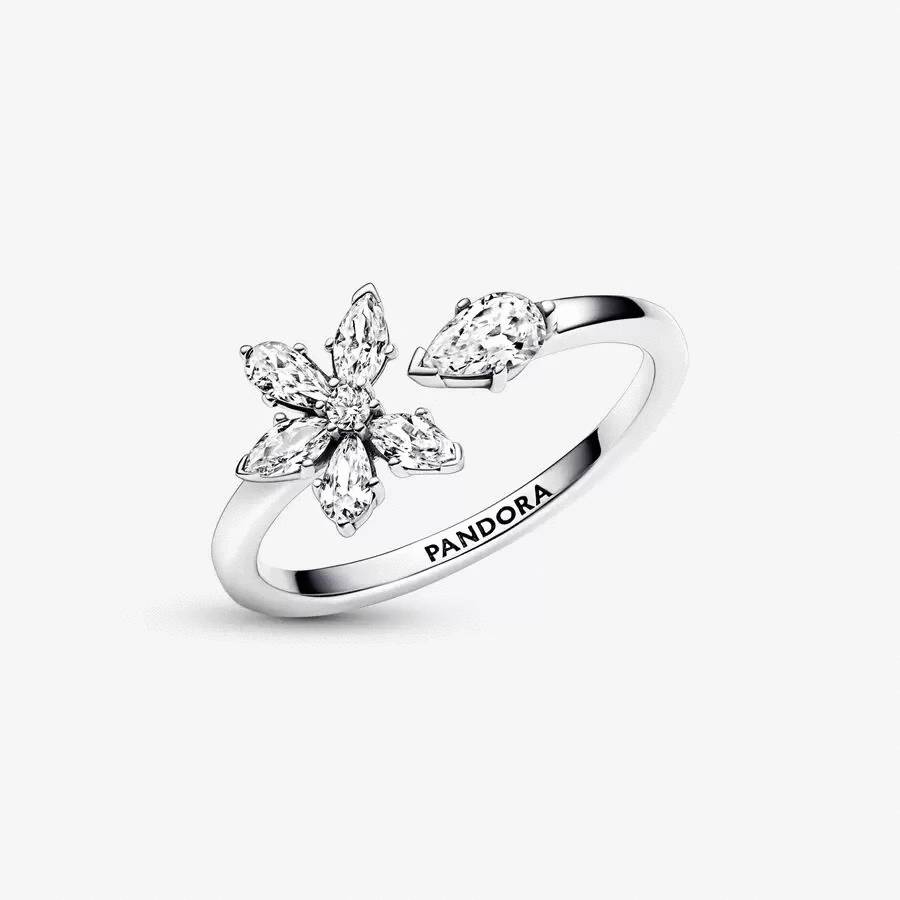 Il gioiello, che riprende le linee dei petali, è caratterizzato da una composizione principale che alterna pietre taglio marquise e a goccia intorno a una pietra centrale rotonda. L'altra estremità della fascia aperta presenta invece una pietra con taglio a pera che sembra essere stata staccata dalla composizione principale. Indossa questo gioiello in Argento Sterling 925 per aggiungere un tocco di eleganza ai tuoi look di ogni giorno. Importante: la misura non è regolabile e ogni tentativo di aprire, piegare o stringere la fascia potrebbe danneggiarla.