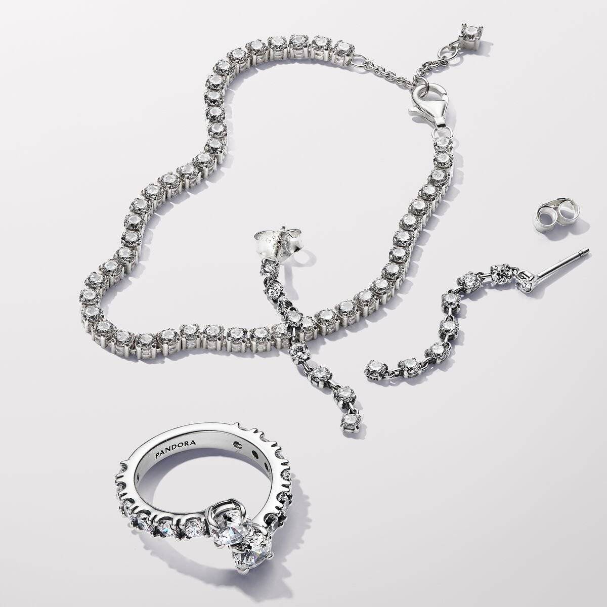 Illumina i tuoi look con l'Anello Fascia Scintillante Intrecciata della collezione Timeless. Questo anello in Argento Sterling 925 presenta una fila di pietre di zirconia cubica incolore con incastonatura a griffe e taglio brillante rotondo. La fascia è leggermente sovrapposta al centro, con una pietra più grande su ciascuna estremità, creando così un elemento centrale unico. Indossalo da solo come protagonista iconico del tuo look o abbinalo agli anelli Fascia Scintillante della collezione Timeless per creare una composizione luminosa.