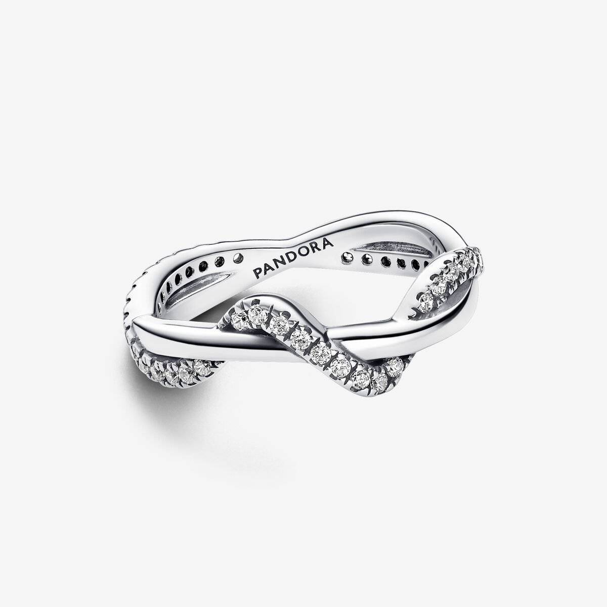 Realizzato in Argento Sterling 925, il nuovo Anello Onda Intreccio Luminoso si ispira al movimento delle onde. Il gioiello presenta una fascia ondulata impreziosita da una fila di pietre di zirconia cubica incolore che si intreccia intorno ad un'altra fascia lucida. All'interno della fascia è inciso il logo Pandora. Raffinato ed elegante, questo gioiello è perfetto sia per essere indossato da solo come protagonista del tuo look sia per essere abbinato con gli altri anelli a onda in finiture metalliche diverse e decorati da pietre luminose per creare composizioni uniche.