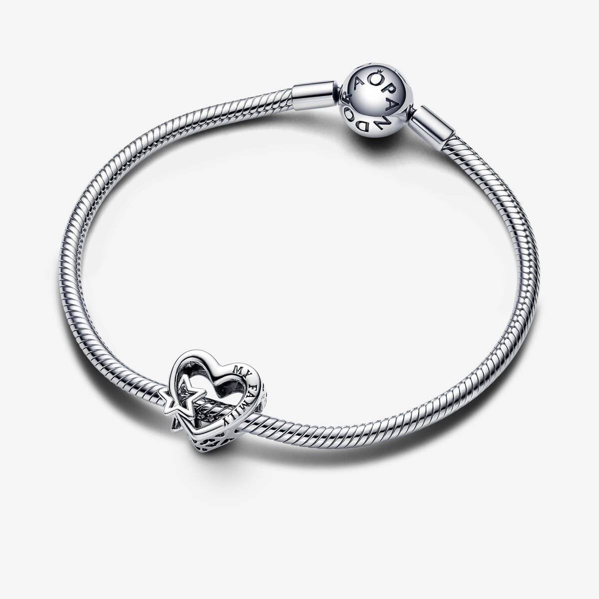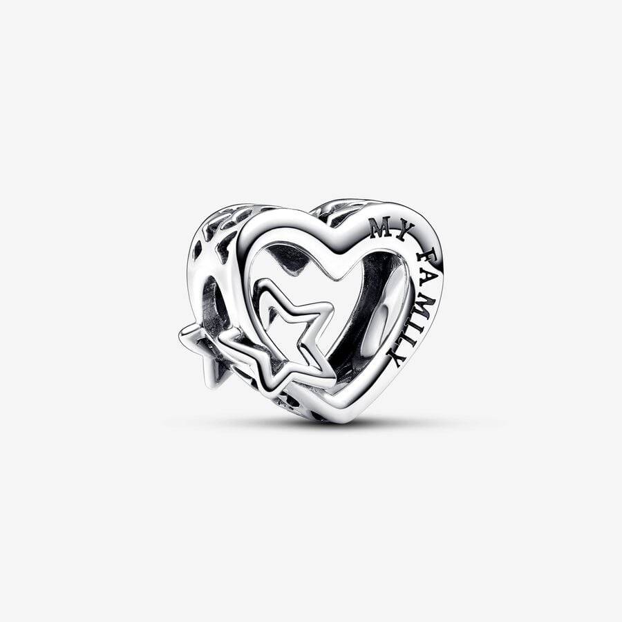 Celebra la tua famiglia con il Charm Openwork Cuore con Stella. Realizzato in Argento Sterling 925, questo charm openwork a forma di cuore presenta una una stella a cinque punte intagliata e un motivo a cuori intagliati lungo il lato. I due lati presentano le incisioni My family (La mia famiglia) e My universe (Il mio universo), che esprimono l'importanza e la forza dei legami familiari. Indossa questo charm sul tuo bracciale per portare sempre con te un simbolo della tua famiglia o regalalo a una persona che ami per dimostrarle quanto è importante per te.