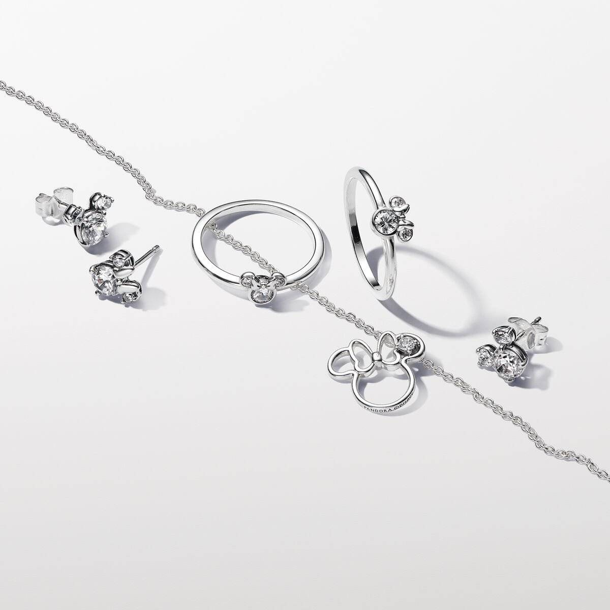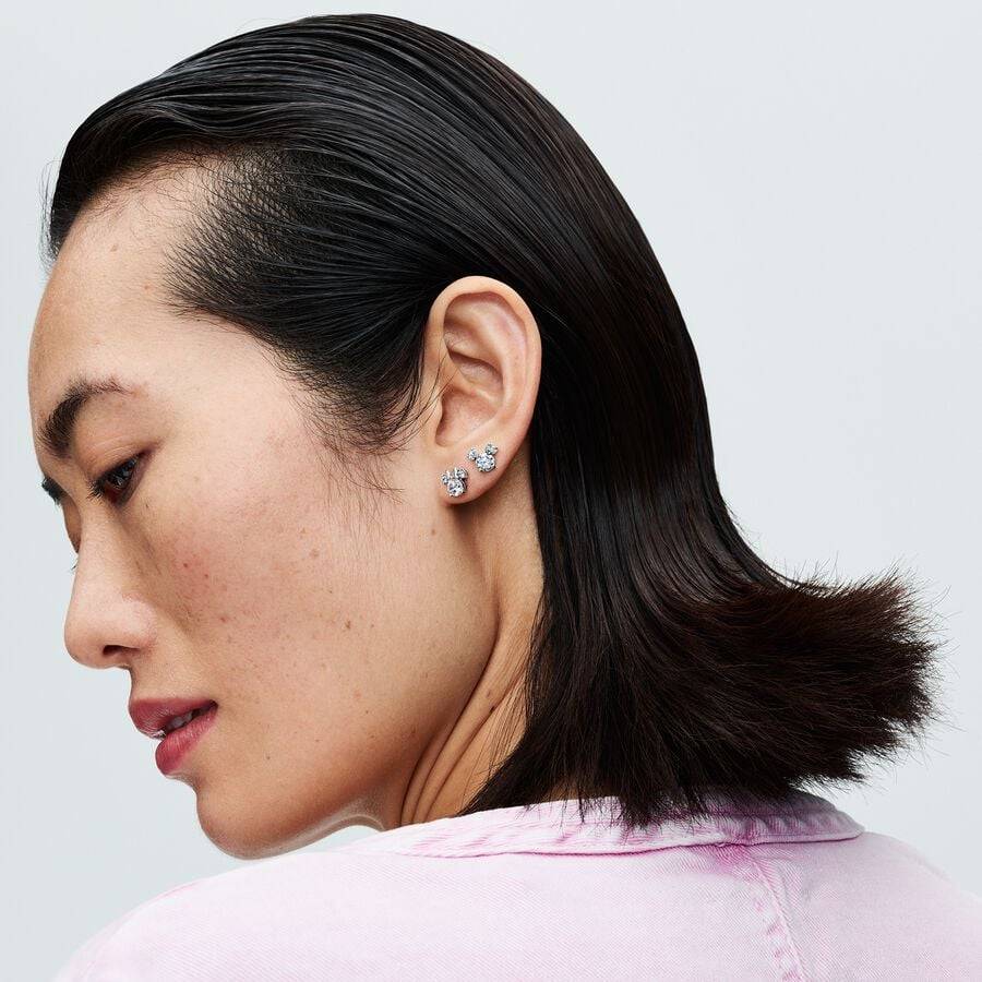 Entra nel magico mondo Disney con gli Orecchini Scintillanti Mickey Mouse e Minnie Mouse in Argento Sterling 925. L'iconica forma della testa di Mickey Mouse e Minnie è ricreata con tre pietre di zirconia cubica incolore su ciascun orecchino a lobo, dando vita ad un luminoso tributo a questi iconici personaggi. La testa di Minnie è decorata da un fiocco lucido al centro. Completati dai loghi Pandora e ©Disney incisi, questi orecchini catturano l'essenza della magia Disney e celebrano la storia d'amore tra Mickey e Minnie.