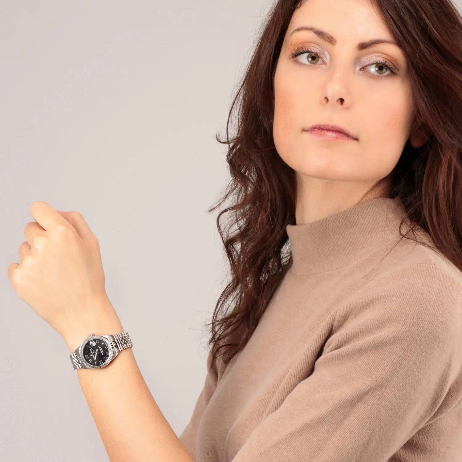 Orologio Philip Watch Caribe - R8253597597 - Philip Watch experience: Urban, Genere : Donna, Materiale e finitura cassa: Acciaio, Misura cassa: 39x31.3mm, Spessore cassa: 9.15, Finitura cassa: Satinato, Colore cassa: Nero, Vetro: Vetro zaffiro, Materiale cinturino: Bracciale in metallo, Colore cinturino: Argento, Chiusura: Fibbia deployment con sicurezza a spinta laterale, Movimento: Quarzo, Garanzia: Ufficiale 2 anni