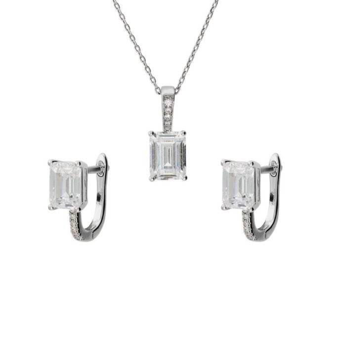 Set collana e orecchini con zirconi a baguette in bronzo placcato rodio, Brobzallure.